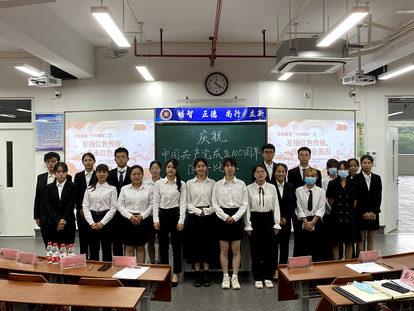 (马克思主义学院 戴树青)为隆重庆祝中国共产党建党100周年,重温党的光辉历程,歌颂党的伟大成就,继承和发扬党的优良革命传统,充分展示当代大学生的爱党爱国爱社会主义的深厚情怀,向党的100周年华诞献礼,6月1日下午,由马克思主义学院主办、政史研究协会承办的庆祝建党100周年演讲比赛决赛在第五教学楼308室举行。