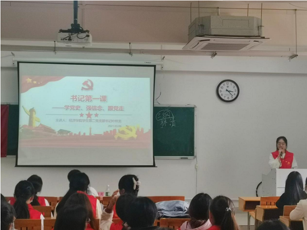 新的学期新的征程,经济学院学生第二党支部以一堂生动的党史课开启学院学生党支部党史学习教育活动,为同志们开讲“第一课”的是经济学院学生第二党支部书记叶梓龙同志。3月9日下午,在4601,经济学院学生第二党支部一百多名同志聆听了主题为“学党史、强信念、跟党走”的专题党史课。