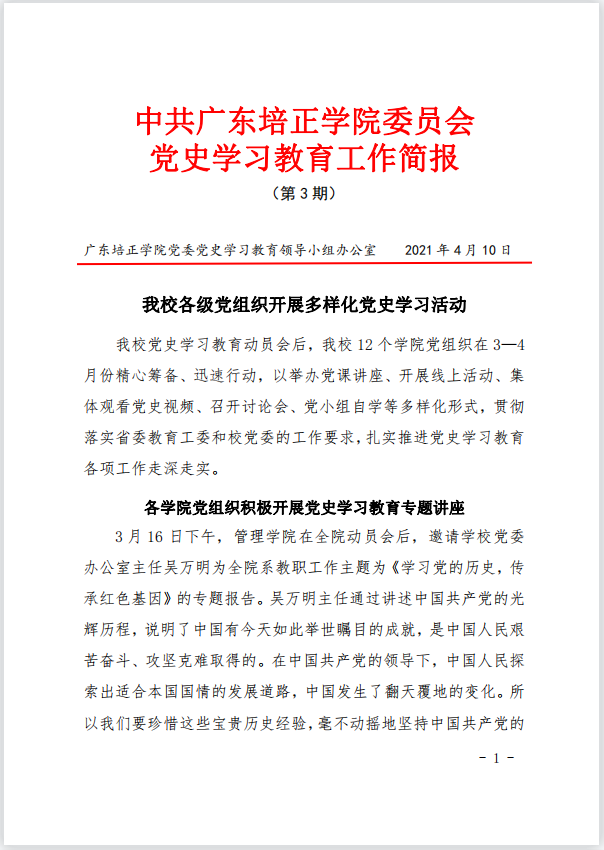 中共广东培正学院委员会 党史学习教育工作简报(第3期)