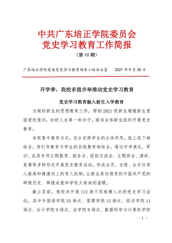 中共广东培正学院委员会党史学习教育工作简报(第10期)