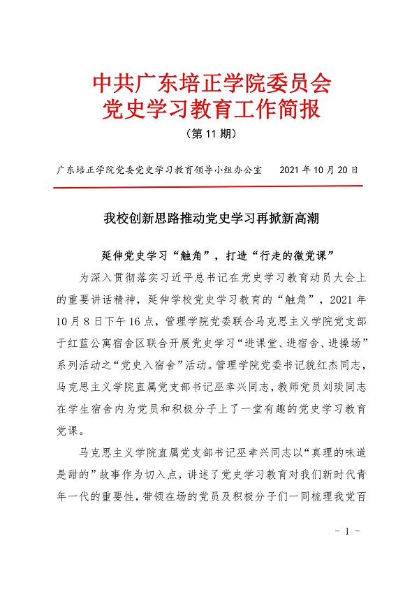 中共广东培正学院委员会党史学习教育工作简报(第11期)