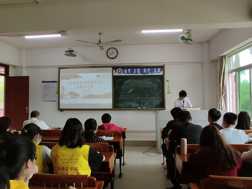 本网讯(法学院学生第一党支部 黄富茹)2021年3月16日下午14:30,根据学校党委的工作要求,我院党总支在史带楼204顺利开展了学习习近平同志《论党的宣传思想工作》的专题学习会,本次会议由罗钊老师领读,法学院全体教师党员及学生党员参与了本次会议学习。