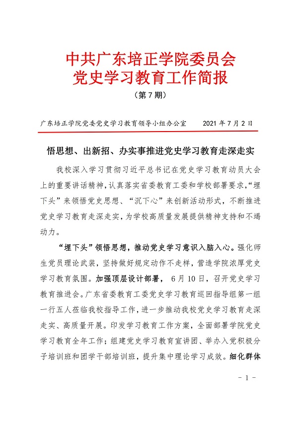• 中共广东培正学院委员会党史学习教育工作简报(第7期)