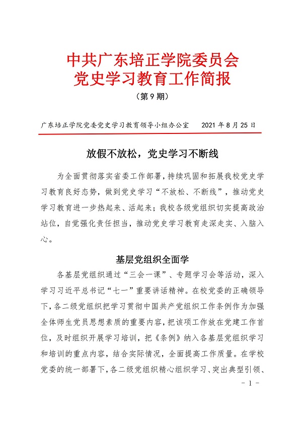 • 中共广东培正学院委员会党史学习教育工作简报(第9期)