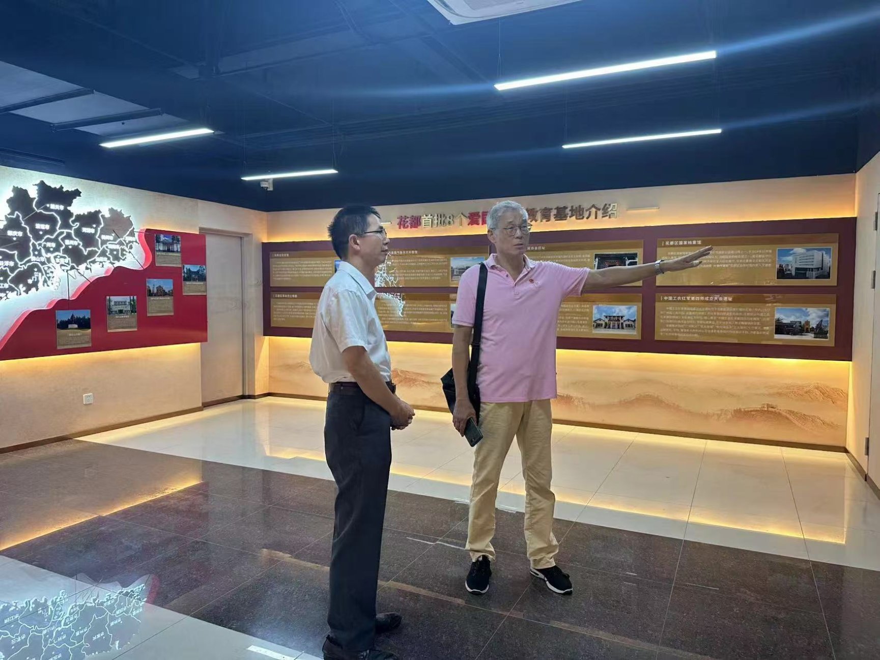 报告会后,马克思主义学院院长易钢陪同丁晋清副院长参观了我校党建与思想政治教育基地。
