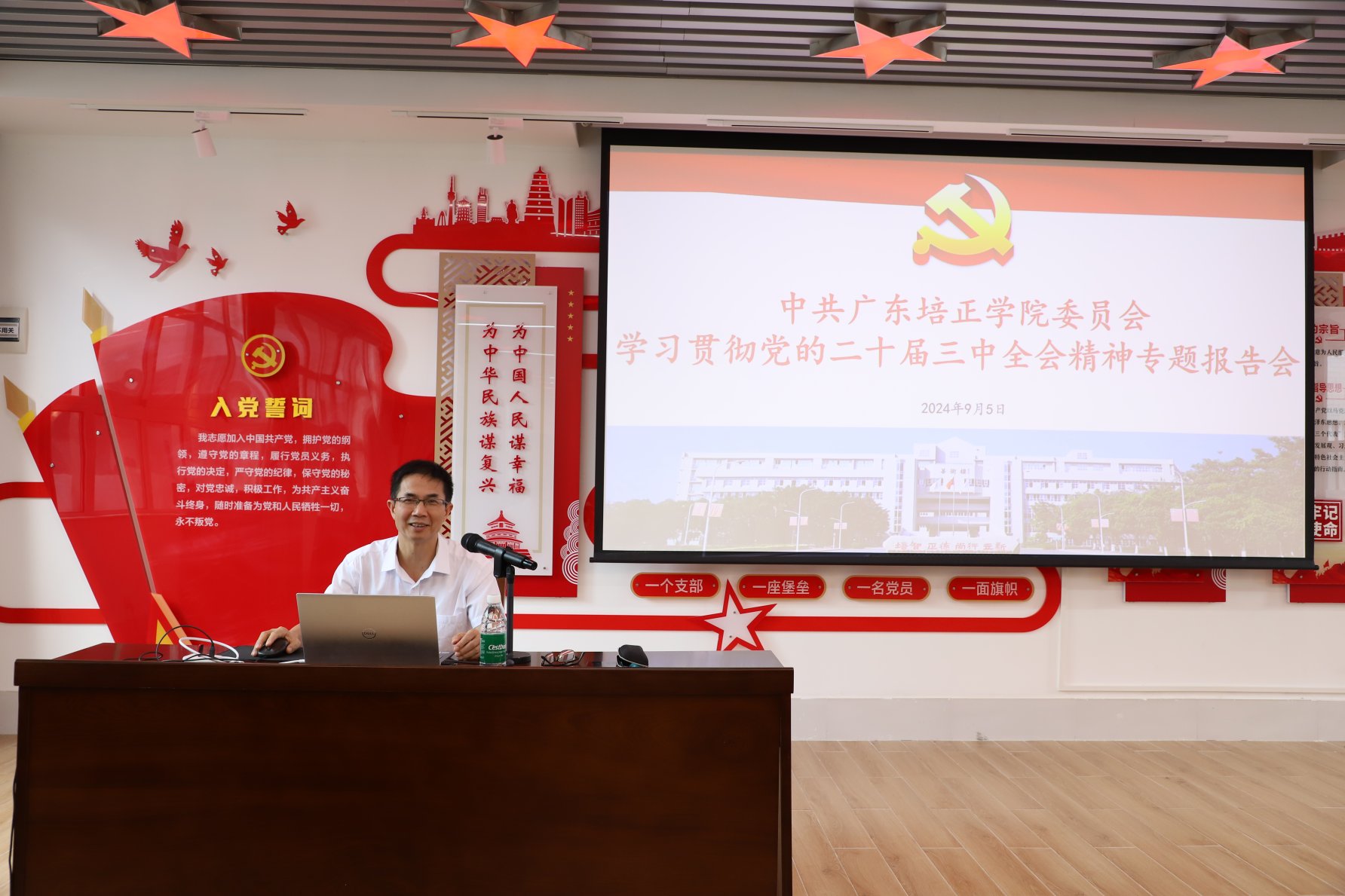 本网讯(马克思主义学院 冯冠军)为深入学习贯彻党的二十届三中全会精神,切实把全体教职工的思想和行动统一到全会精神上来,2024年9月5日下午,我校邀请广东省社会科学院丁晋清副院长为我校教职工作了主题为“在新征程上谱写改革开放新篇章——学习贯彻党的二十届三中全会精神”的专题辅导报告。此次报告会在我校党建文化中心举行,学校党政领导、全体中层干部、马克思主义学院部分教师代表参加。报告会由校党委副书记邓惠主持。