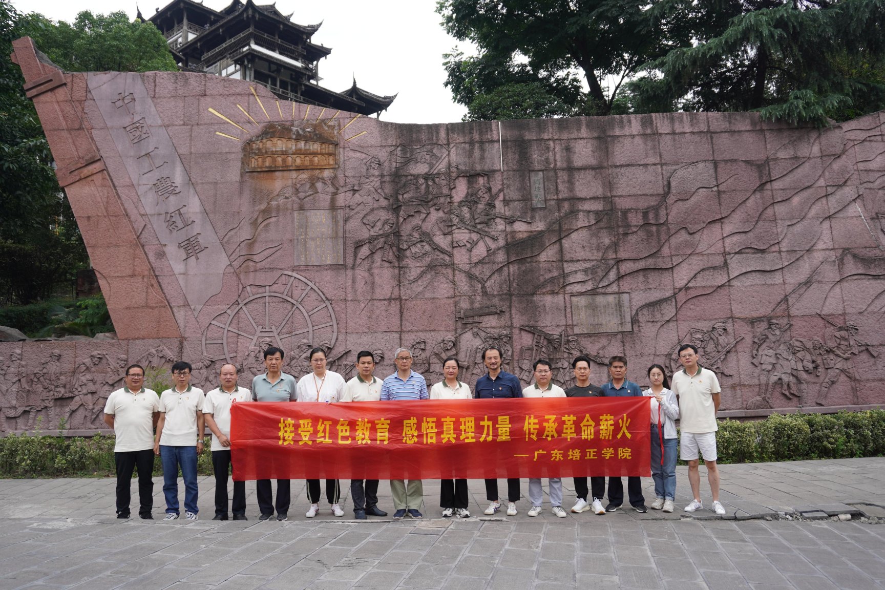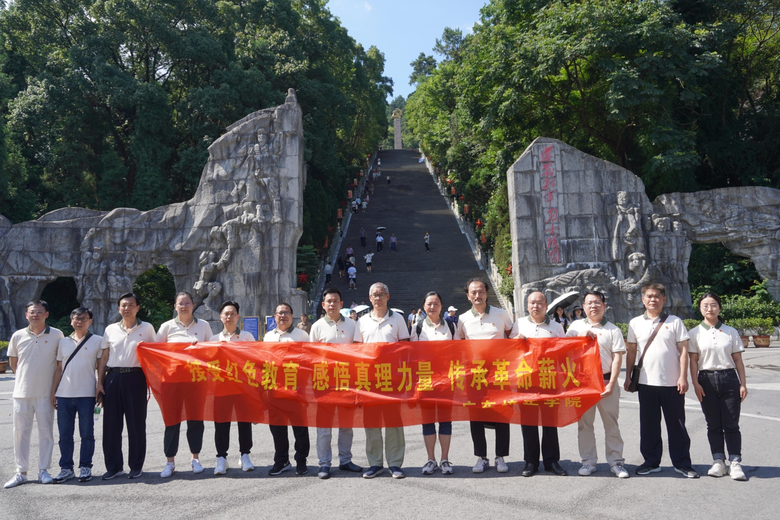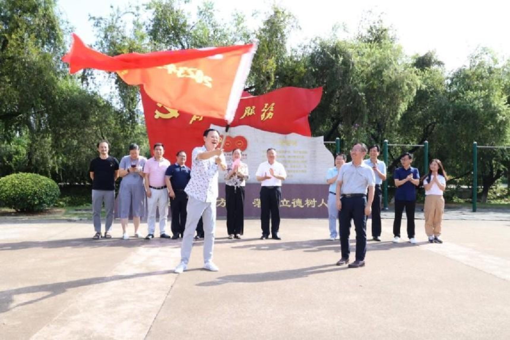 本网讯(党委办 郑菁华 孙小微)为深入开展学习贯彻习近平新时代中国特色社会主义思想主题教育,践行“学思想、强党性、重实践、建新功”的总要求,7月15日—7月19日暑假期间,我校党务干部代表组成红色研学团,由党委副书记、校长助理邓惠带队,前往贵州开展“接受红色教育 感悟真理力量 传承革命薪火”红色研学活动。7月14日启程前一日,学校党委书记武电平、党委副书记黄弢在学校国强广场党旗雕塑前为红色研学团授旗。