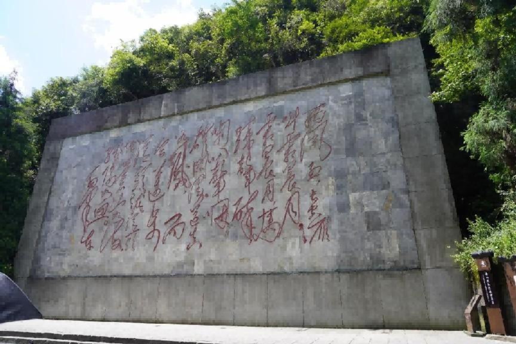 红色研学团步行登娄山关,在关口东侧山崖,看到刻有毛主席《忆秦娥·娄山关》诗词手迹的巨大石碑。这块石碑用云南大理石镶嵌,全长25米,通高13.55米,最大的字有3米多高。行至山腰,崖壁上雕刻着1985年为纪念遵义会议五十周年由中国著名书法家舒同题写的“娄山关”三个红色大字,辉映于青松间格外醒目。