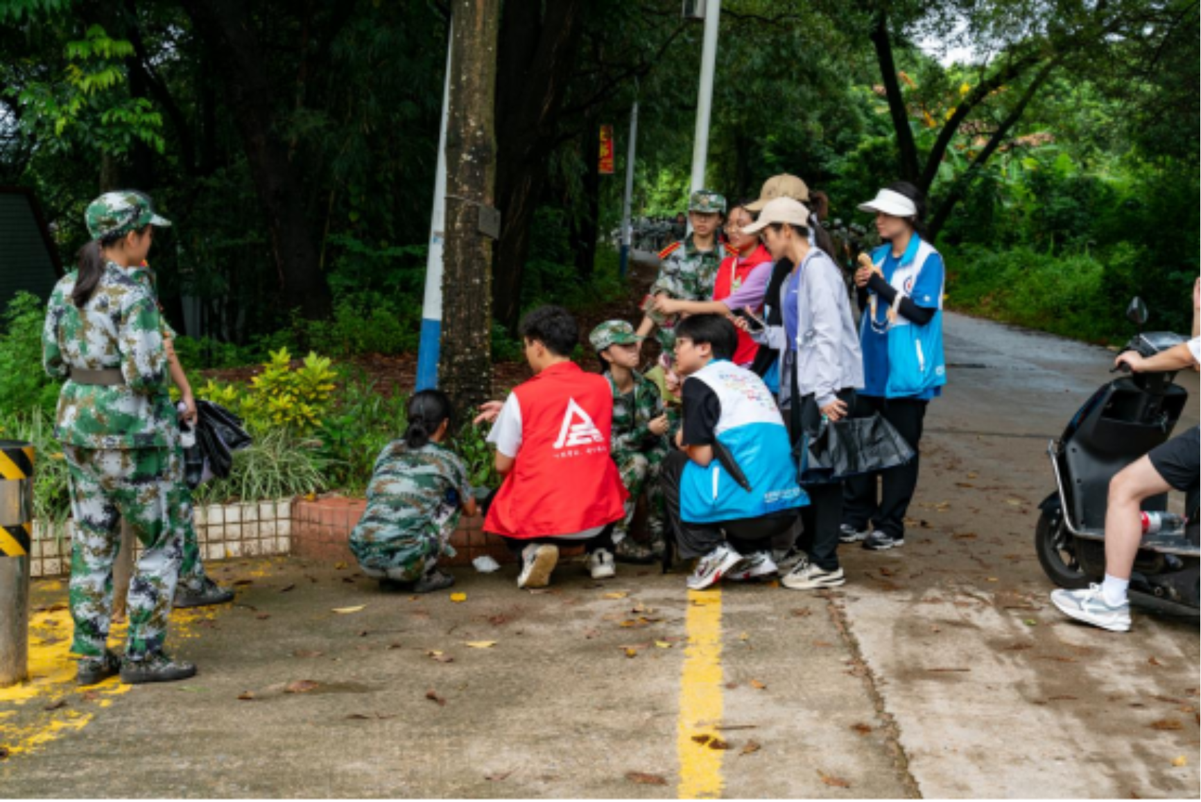 行军队伍分两列纵队行进。一路上,同学们坚持军训纪律,服从命令、听从指挥、行进有序,歌唱军歌激励打气,以顽强的意志和团结协作的精神,展现了培正学子昂扬向上的精神风貌。
