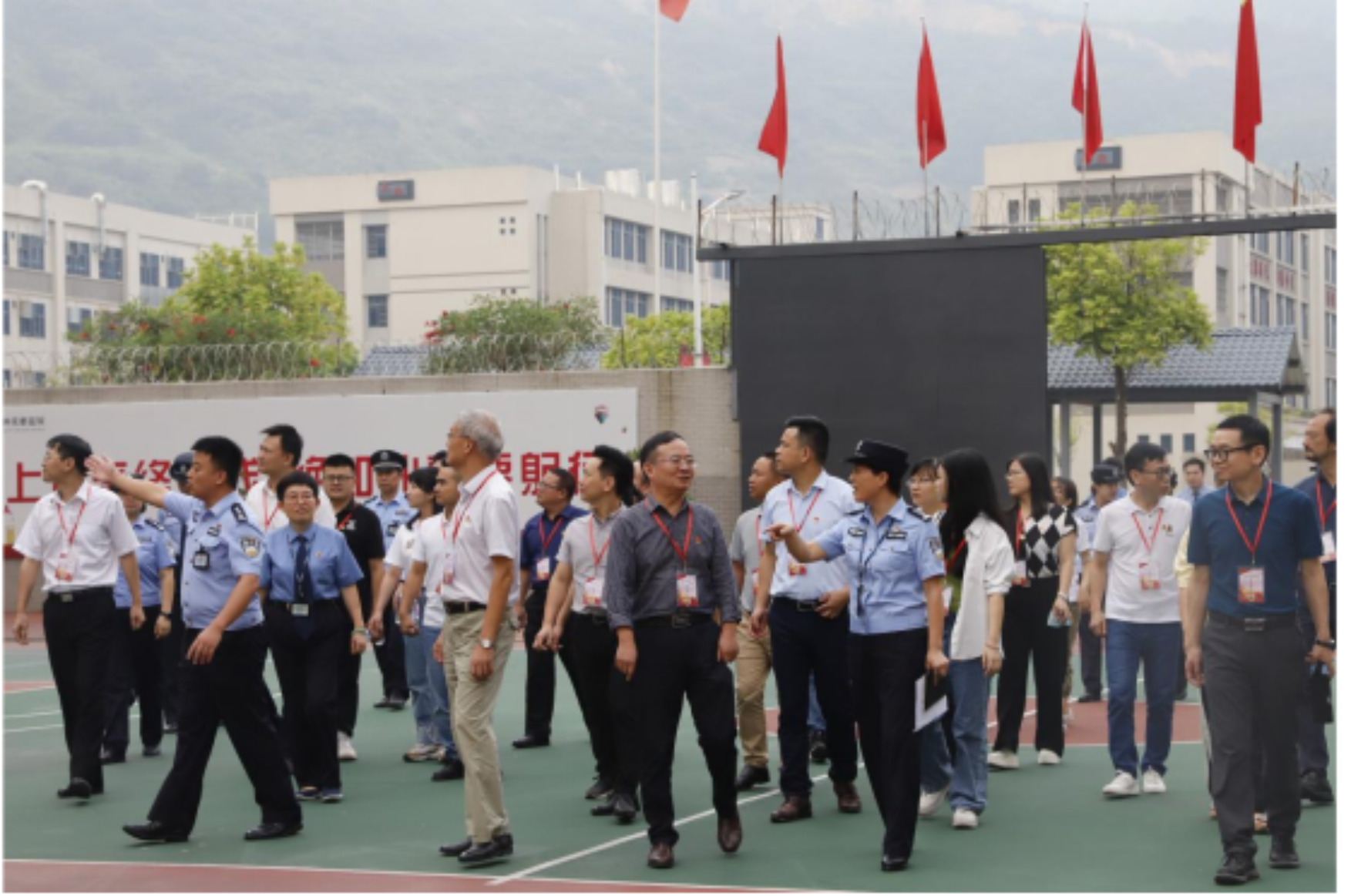 图1:狱警带领来访人员参观监区
