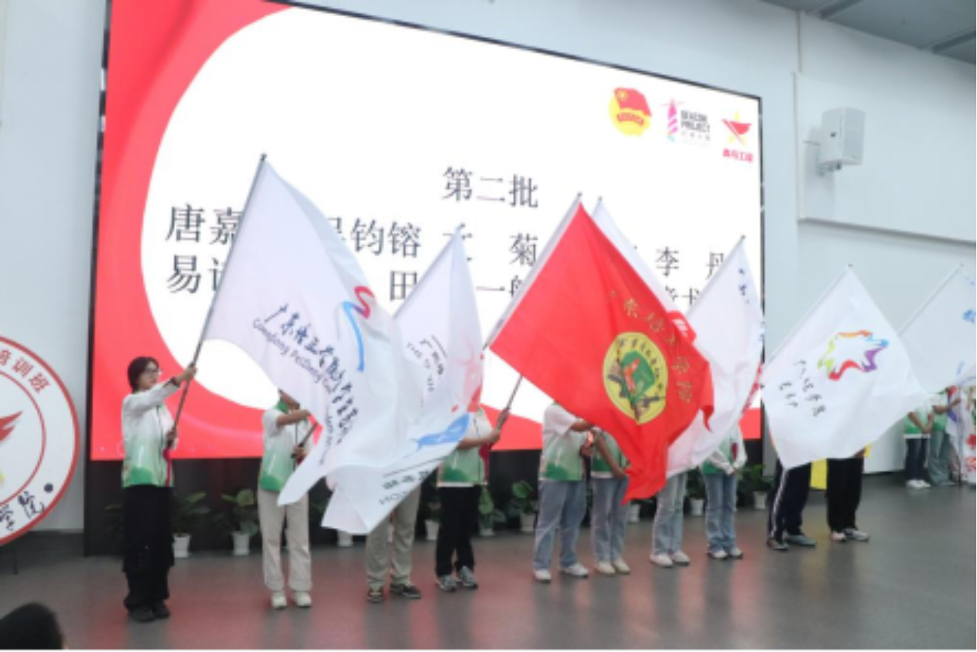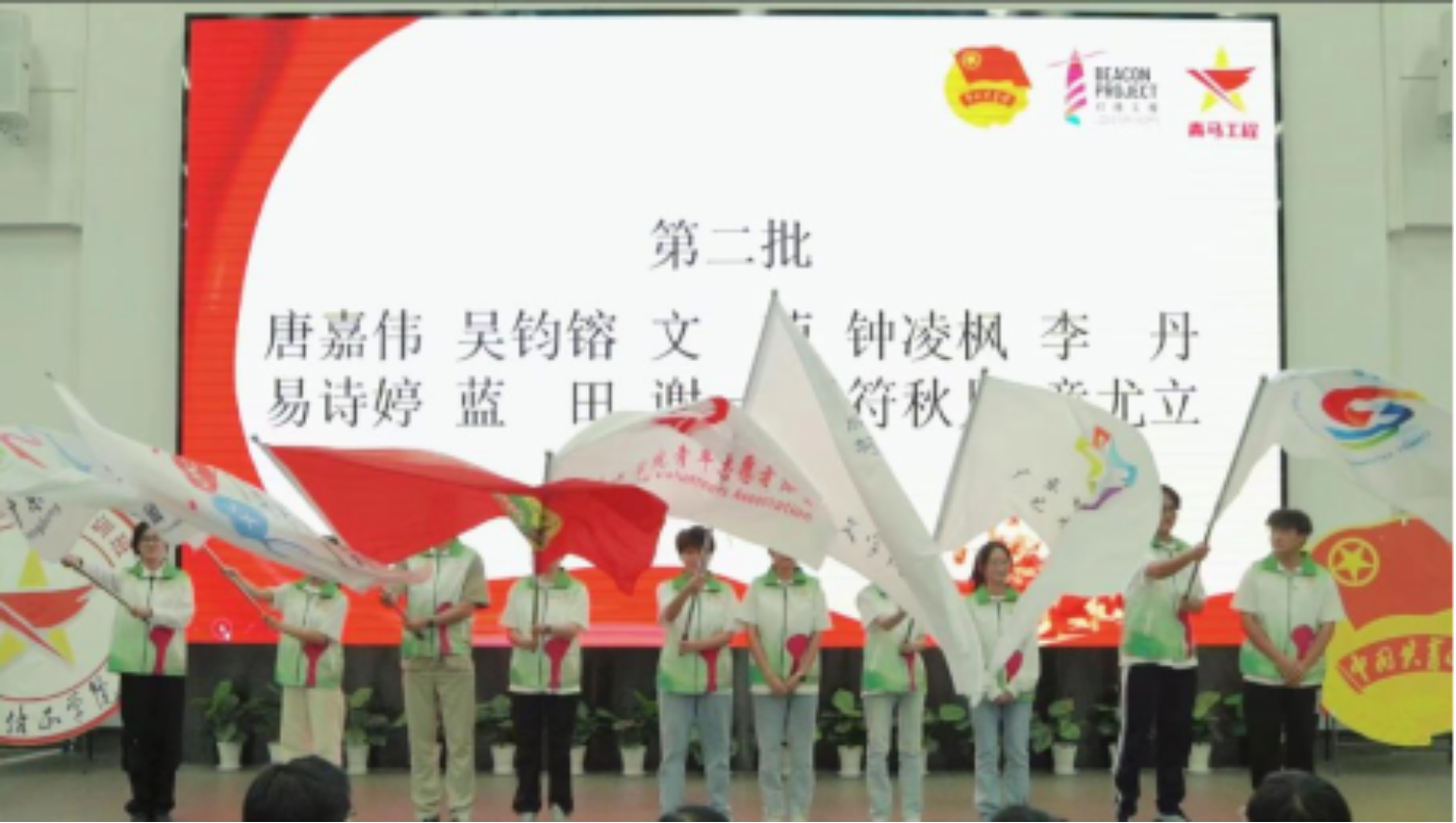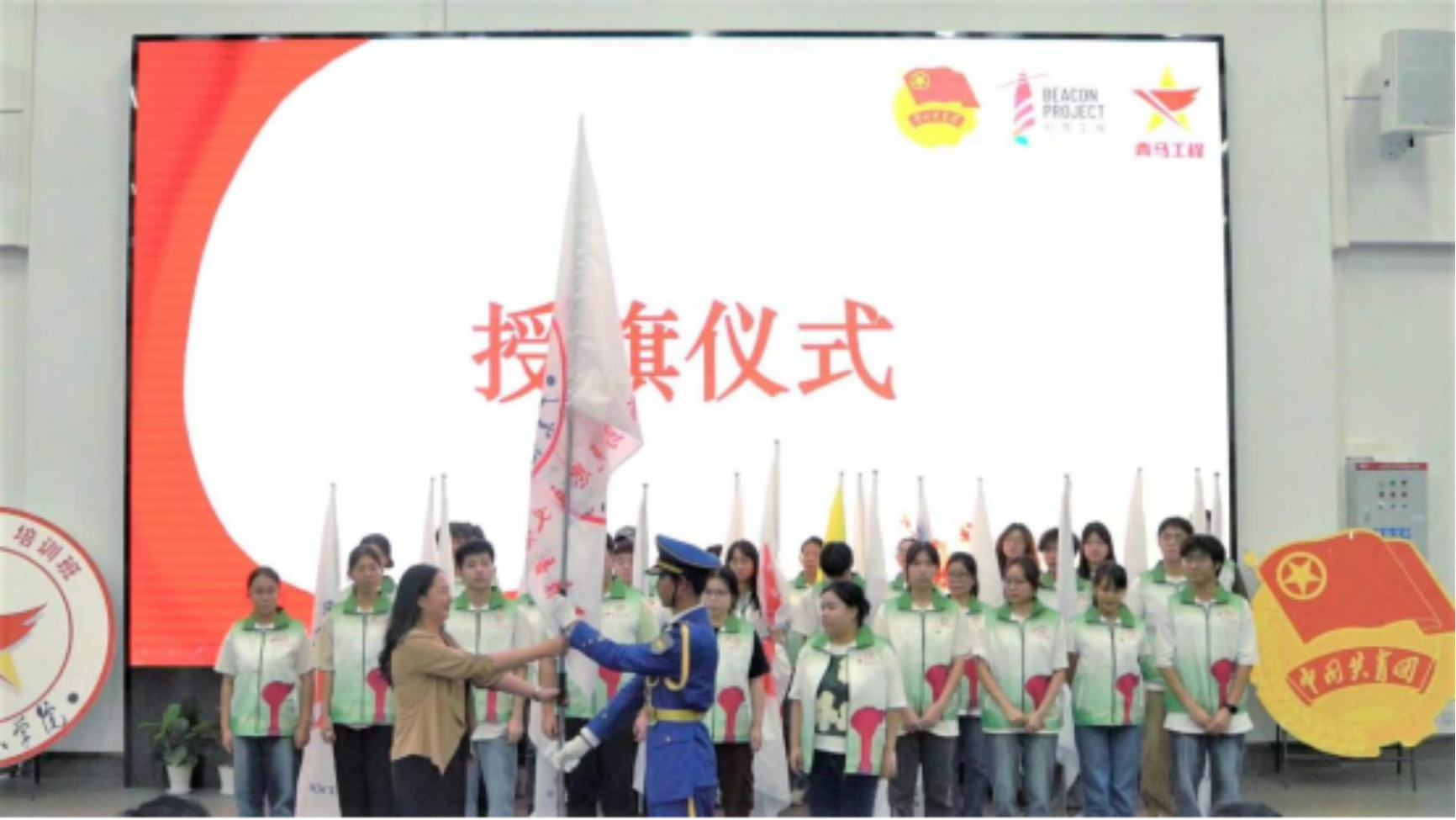 学校党委副书记邓惠老师为第六期“青马”培训班授旗