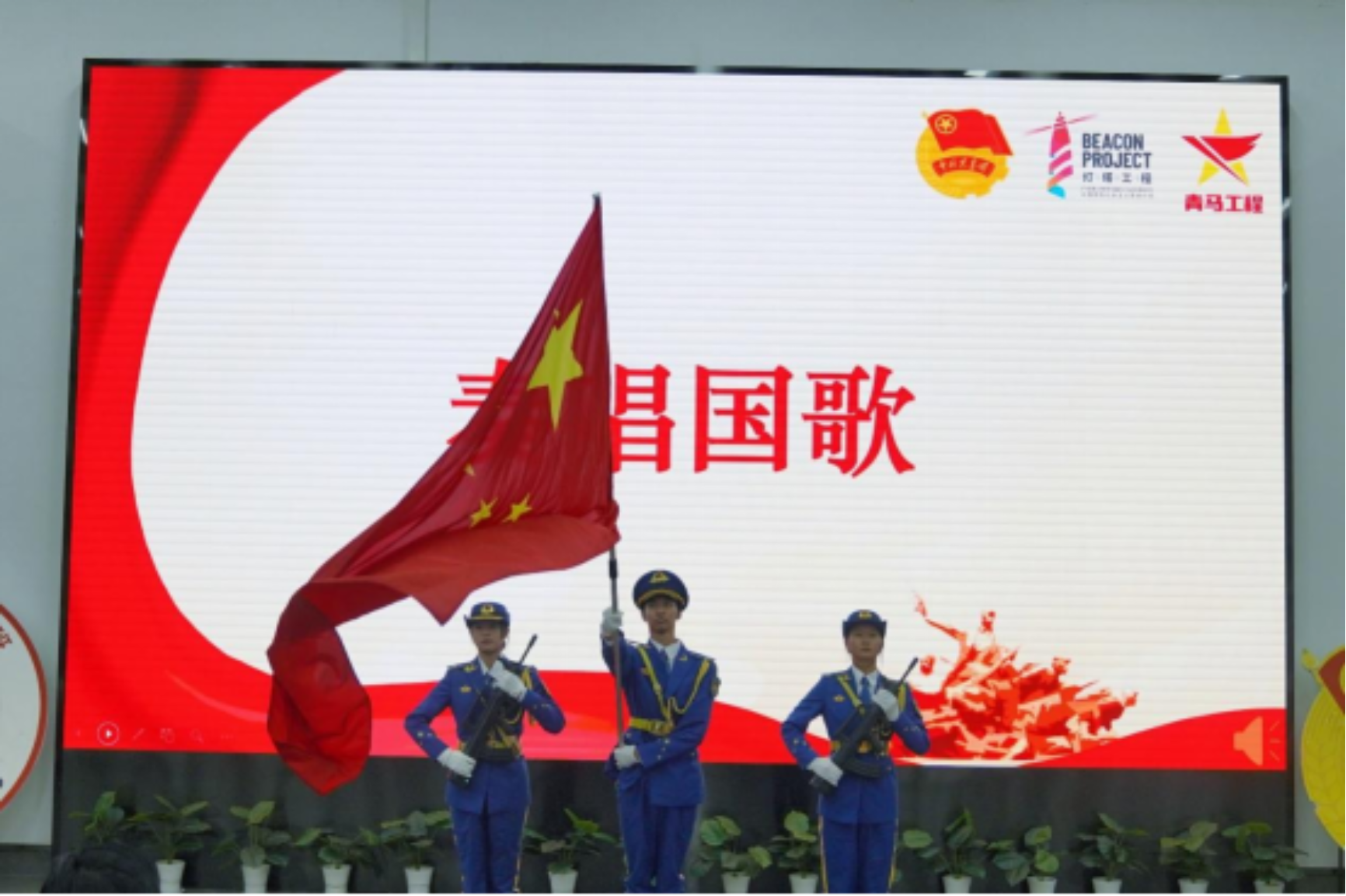会议伊始,全体肃立,奏唱国歌。曙光熠熠,红旗飘扬,国歌铿锵,久久回荡,青马学子以“青马”立志,以“青春”励行,时刻铭记党和国家赋予的光荣使命,奋进新征程,让青春在强国建设、民族复兴的火热实践中绽放绚丽之花!