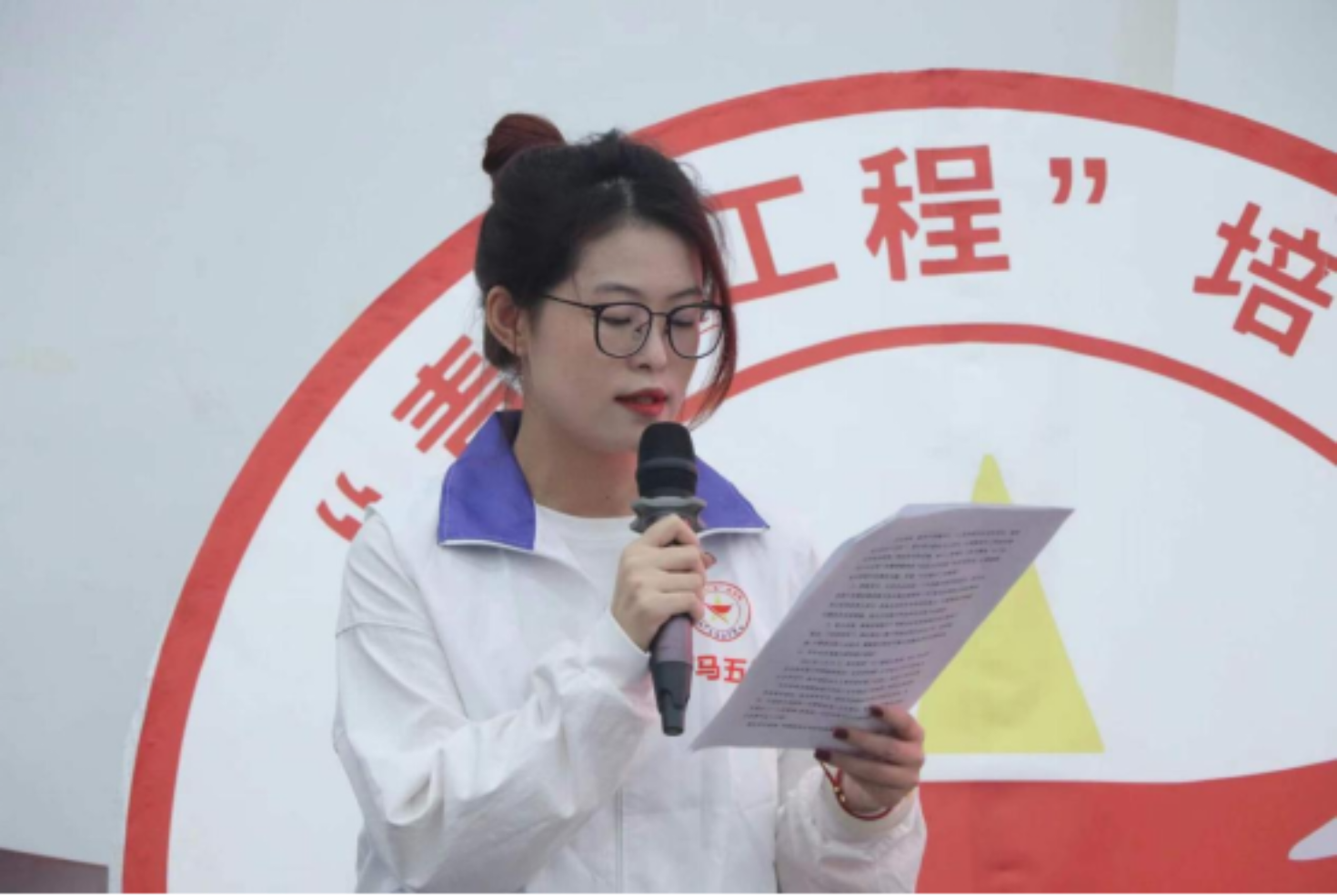 在“青马”故事会环节,第五期“青马”培训班优秀学员代表刘慧慧同学,讲述了她和“青马”的故事。在回忆与青马的点滴中分享了自己的感悟。她讲到,在“青马”的一年里,参加了很多有意义的活动,收获斐然。特别是在蒙峒古村研学时,通过蒙美情学姐讲述的经历,让她明白,身为青年大学生,应当勇于肩负乡村振兴的重担,发挥青年大学生的示范作用,为乡村振兴注入青春力量。