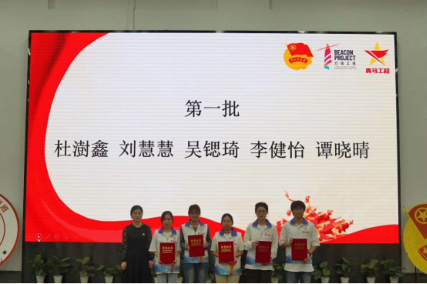 (第五期“青马”培训班优秀学员代表,校团委组织部部长,刘慧慧)