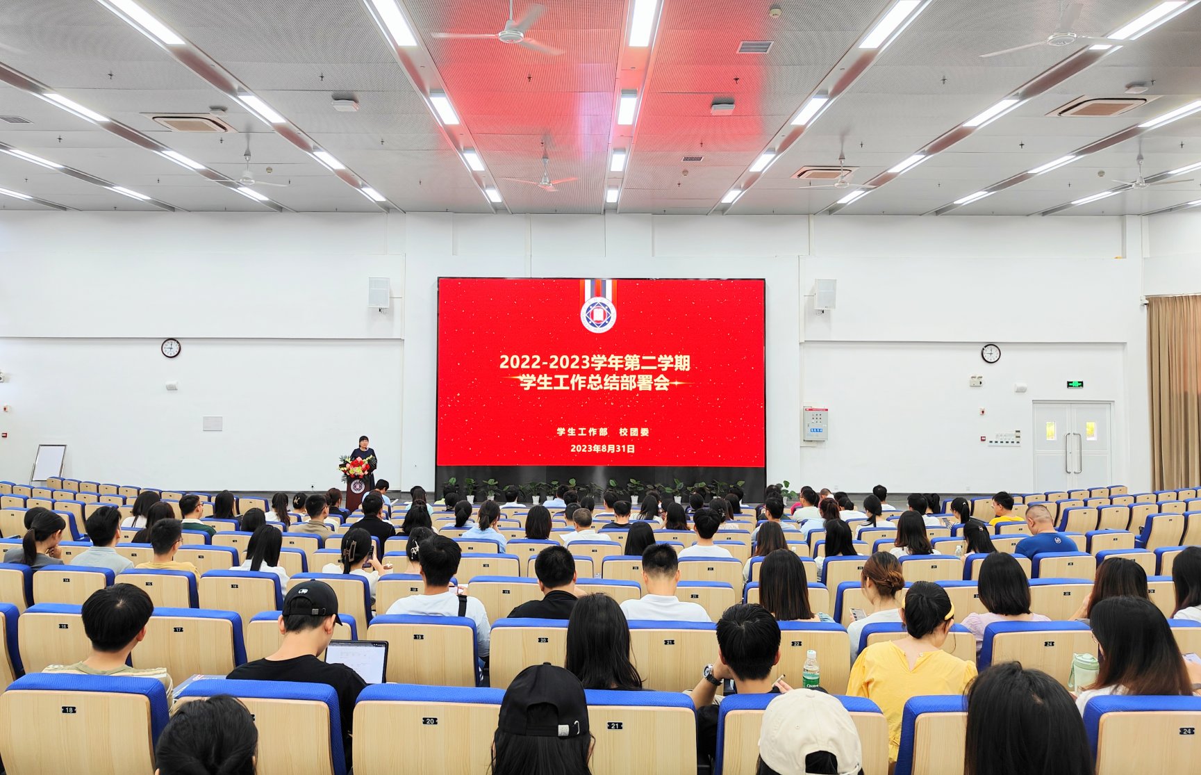 本网讯 (学生工作部 张敬辉)8月31日上午,2022-2023学年第二学期学生工作总结会在5教108报告厅召开,学生工作部、校团委以及各二级学院全体学工老师参加会议。