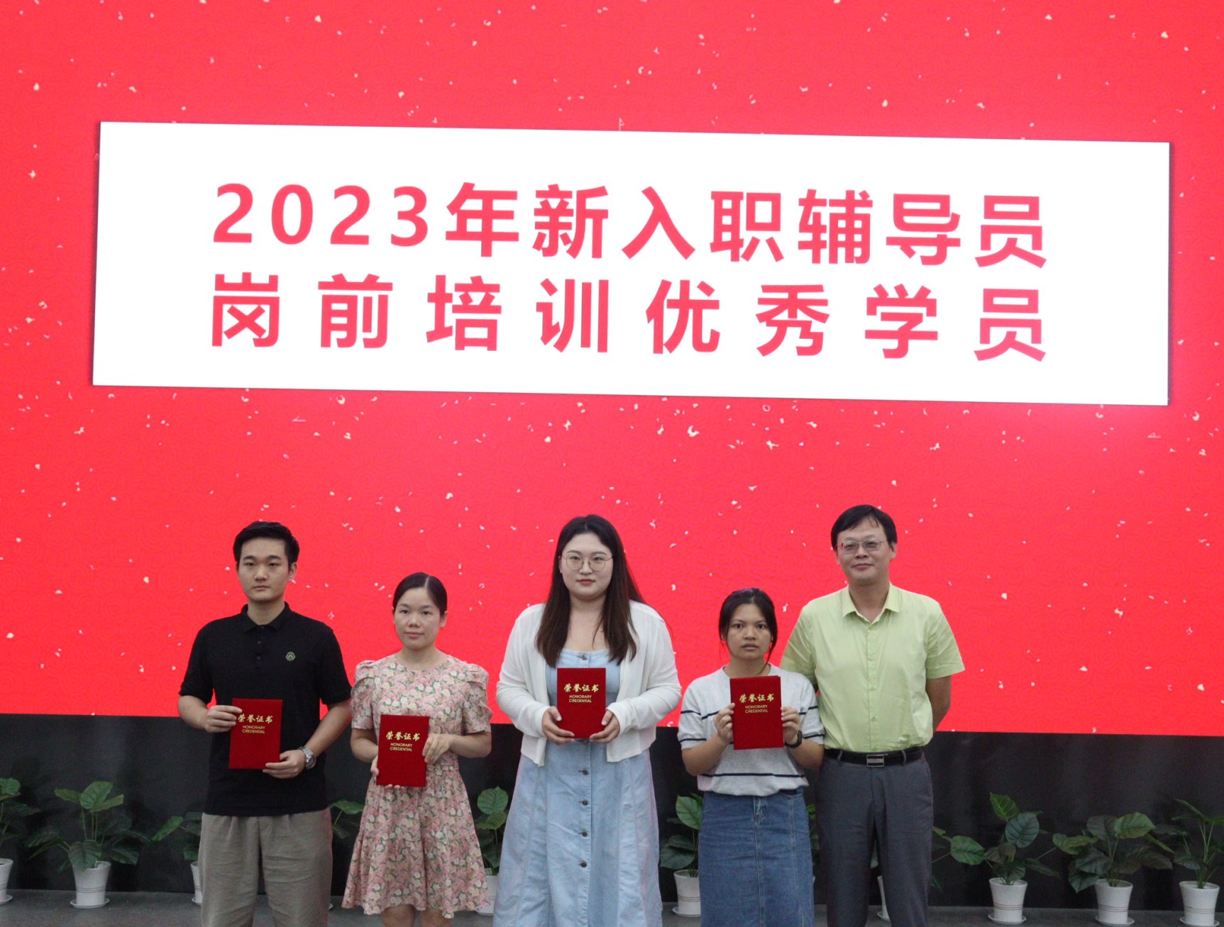 总结会议上,19名新入职学工教师依次上台自我介绍,阮霖书记为获得2023年新入职辅导员岗前培训的优秀学员颁奖;黄海峰部长为获得2023届毕业典礼“最佳组织奖”的二级学院颁奖。