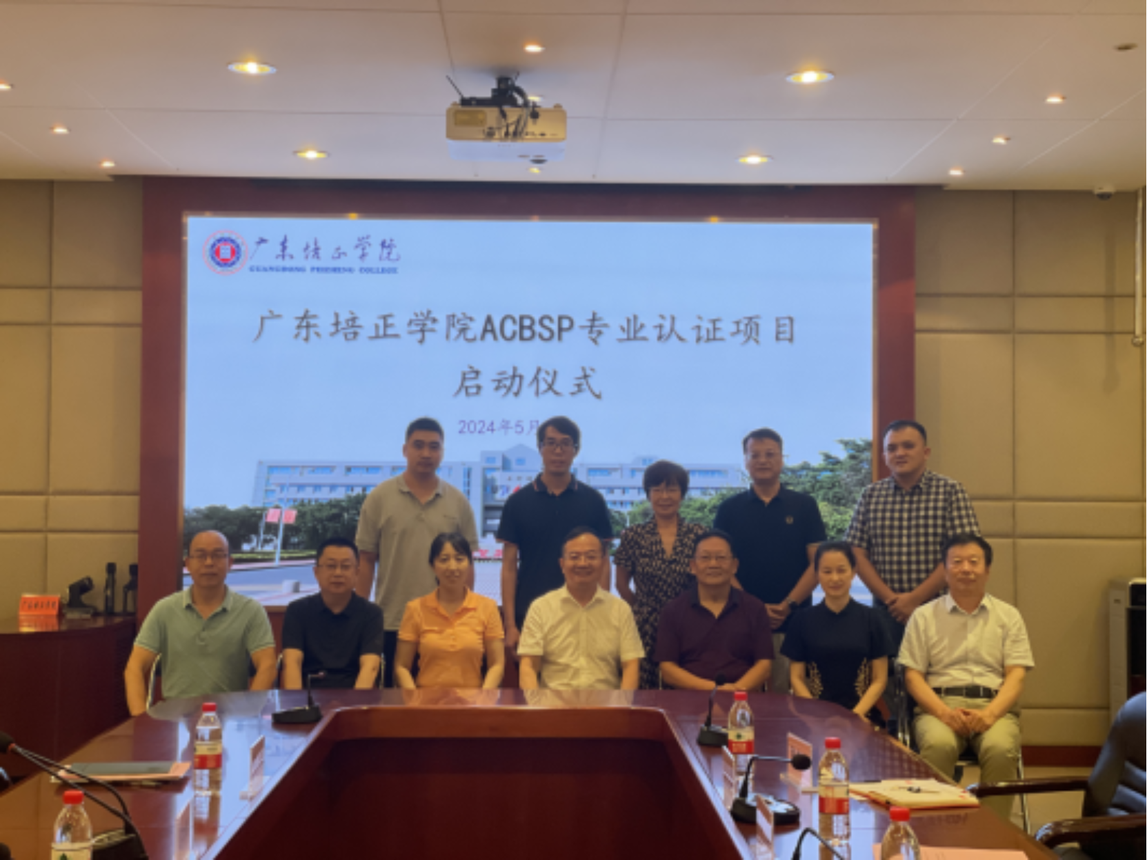 本网讯(教务处 陈依琳)5月15日上午,广东培正学院ACBSP专业认证项目启动仪式在行政楼会议厅举行。本次启动仪式由教务处陈军处长主持,黄弢常务副校长,ACBSP中国区域负责人彭彦女士、许冰青先生,教务处黄海副处长、罗韬副处长及相关二级学院院长、教学副院长参加了此次启动仪式。