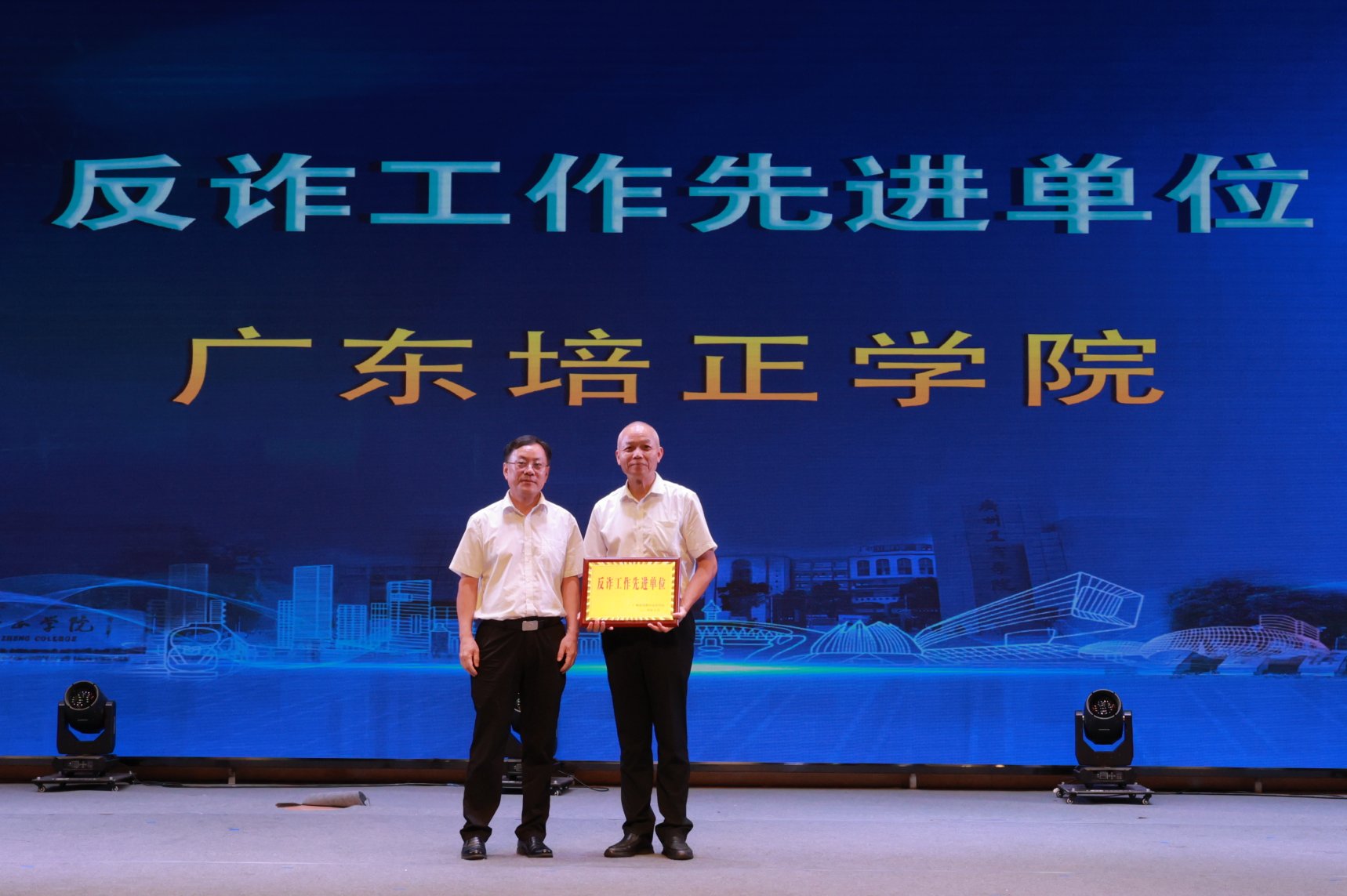 晚会最后,花都区公安分局为区内19所大中专学校颁发了“花都区高校平安联盟成员单位”牌匾,为通过投票推选出的“最受欢迎节目”颁发奖杯,我校获得“反诈工作先进单位”荣誉称号。