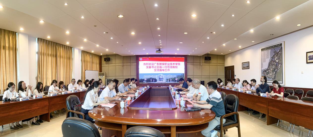 王磊书记对武书记的介绍表示感谢,同时也简要介绍了广东新安职业技术学院的基本概况。随后,双方人员针对党建工作内容展开深入交流。
