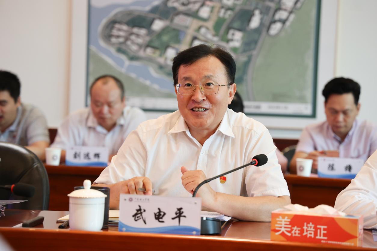 座谈会上武电平书记对王磊书记一行的到访表示热烈欢迎。与会人员共同观看了我校宣传片。随后武电平书记围绕着把牢“一个方向”、坚守“一个根本”、抓好“三支队伍”、实施“六大工程”四个方面系统介绍了学校党建工作开展情况。武书记强调,学校党委始终坚持“围绕中心抓党建,抓好党建促发展”的工作思路,不断凝练党建特色和品牌,提升党建工作质量和水平,以优异的成绩迎接本科教育教学审核评估,为谱写中国式现代化广东篇章做出应有贡献!