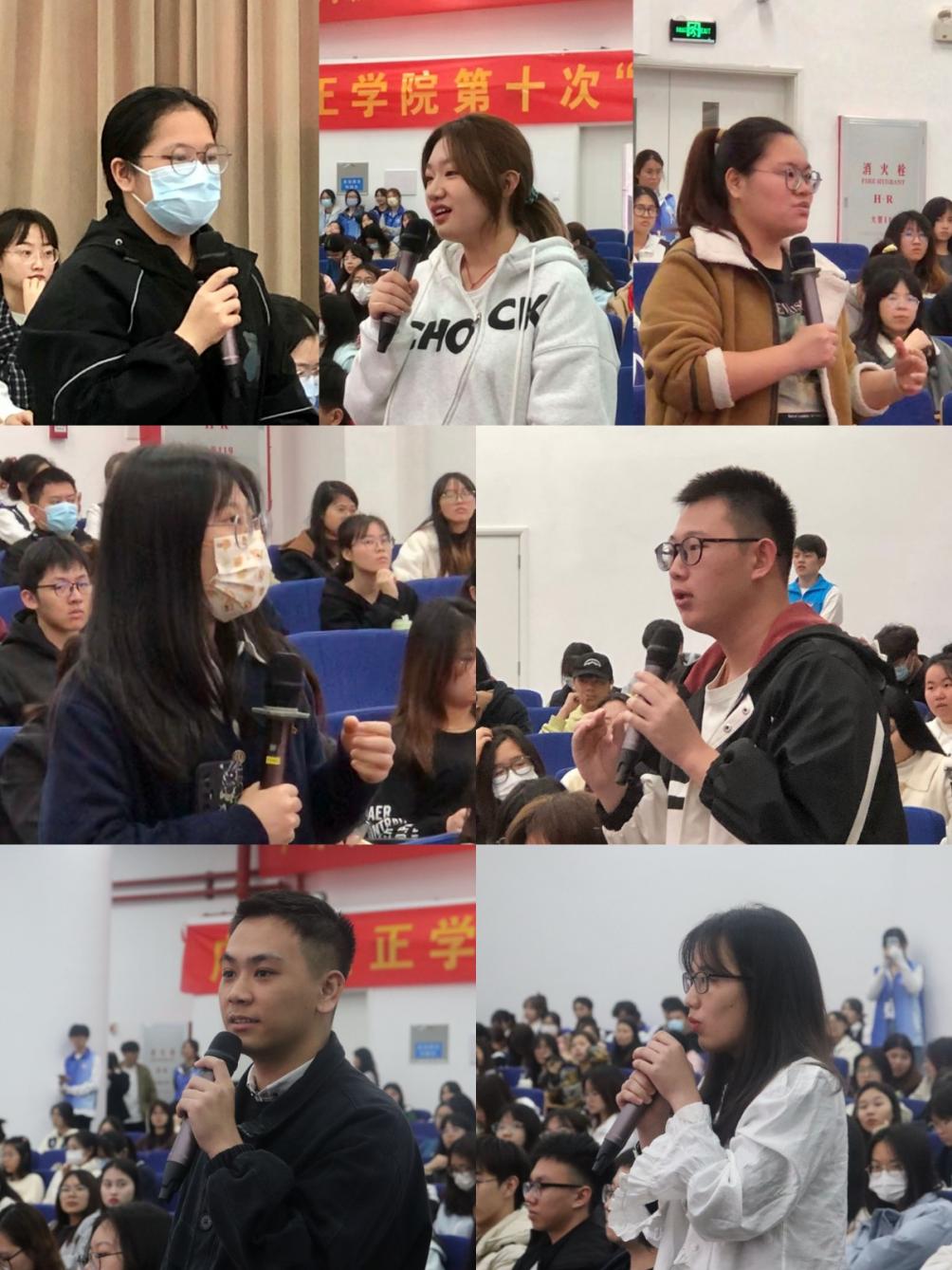 在各学院学生会权益生活部代表提问环节和现场自由交流环节,学生代表踊跃参与,纷纷建言献策,就校园环境、后勤管理和服务、教学管理和服务、学生管理服务、学风建设等方面提出问题和建议,与会相关部门负责人均给予一一答复,与会校领导做出补充和明确表态,赢得了在场学生阵阵掌声。