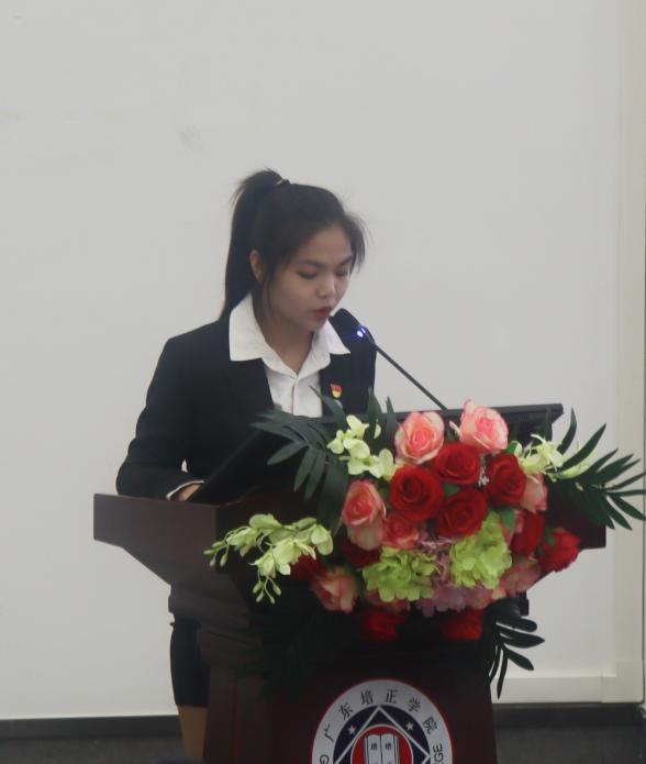 校学生会主席李健怡同学向大会作广东培正学院学生会权益工作汇报,主要围绕2022-2023学年校学生会权益生活部工作和本次“校长与学生面对面”调查问卷分析结果两方面进行汇报。