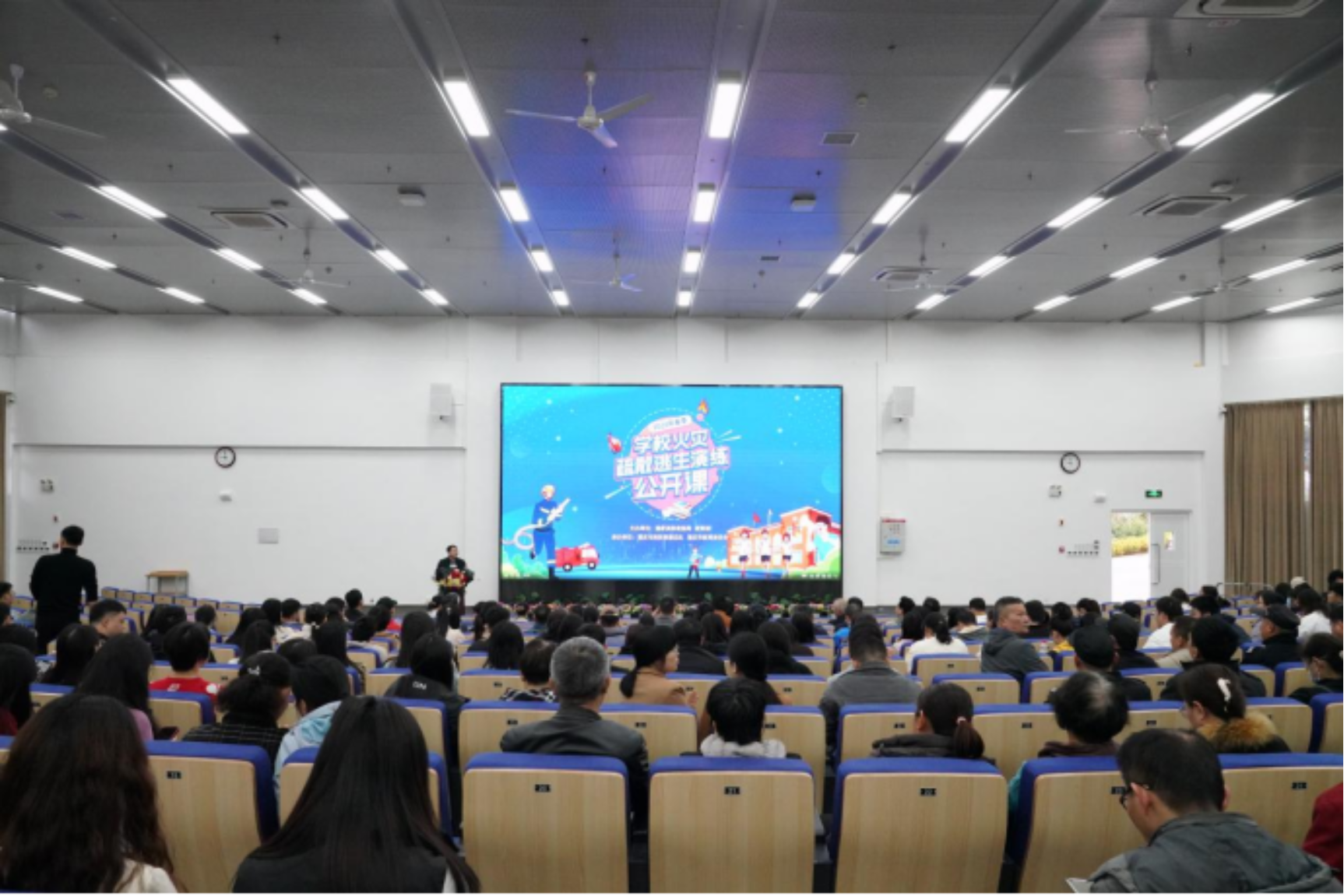 本网讯(学校办公室 娄雯)为切实提升广大师生员工的消防安全意识和疏散逃生能力,全力防范遏制火灾事故发生,根据近日教育部、国家消防救援局联合下发《关于联合开展春季学校火灾疏散逃生大演练活动的通知》的文件精神,学校于2024年3月15日上午组织师生集中观看了由国家消防救援局与教育部联合举办的春季学校火灾疏散逃生演练公开课。校领导、学生工作教师、行政人员、校卫队员和学生代表等近400人在五教报告厅集中收看,学校办公室主任曾小亮主持,副校长黄观德作讲话。