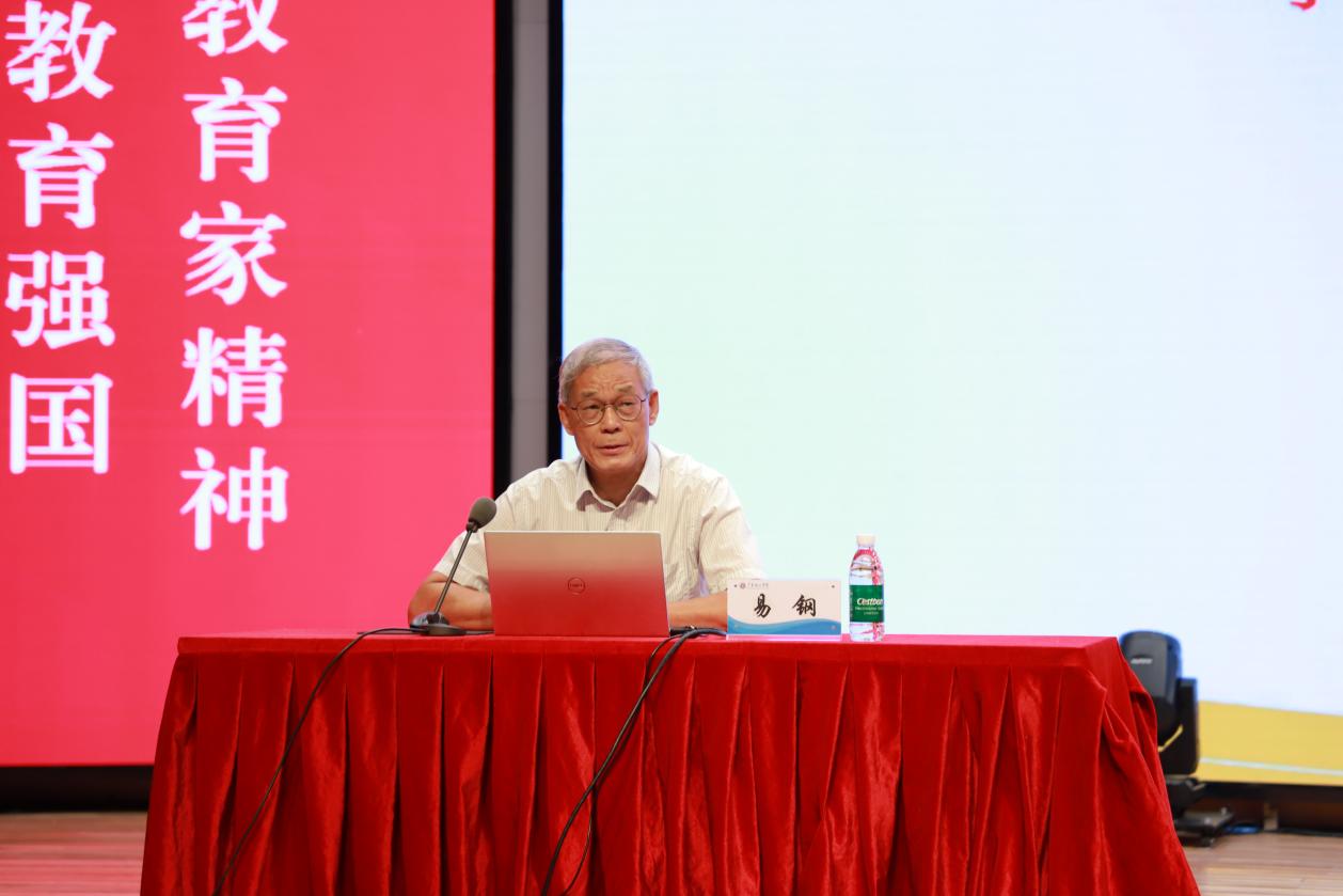 学校马克思主义学院院长易钢教授作题为“‘四个统一’加强师德师风建设——学习习近平总书记加强师德师风建设的重要论述”的专题辅导报告。易钢院长围绕“加强师德师风建设,坚持教书和育人相统一,坚持言传和身教相统一,坚持潜心问道和关注社会相统一,坚持学术自由和学术规范相统一”解读了师德师风建设的重要意义、目标任务和方法途径等,强调教师要深入学习、悉心领会“四个统一”丰富内涵,认真贯彻落实到立身、立学和施教的全过程,要以德立身、以德立学、以德施教,提高教师的综合素质,推进学校高质量发展。