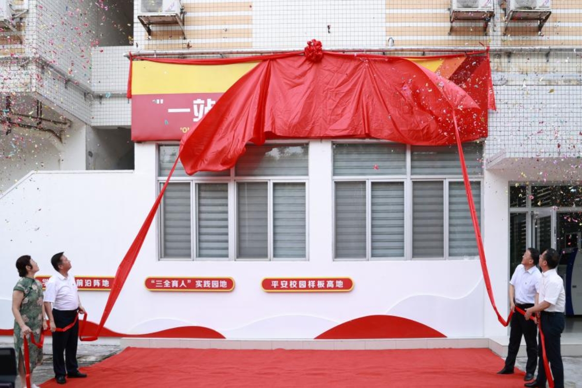 仪式上,黄崴校长、武电平书记、黄弢常务副校长、王丽英副校长共同为“一站式”学生社区服务中心揭牌,这标志着我校学生工作迈上了一个新台阶,也为学校的发展注入了新活力。