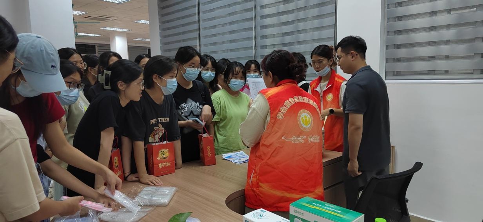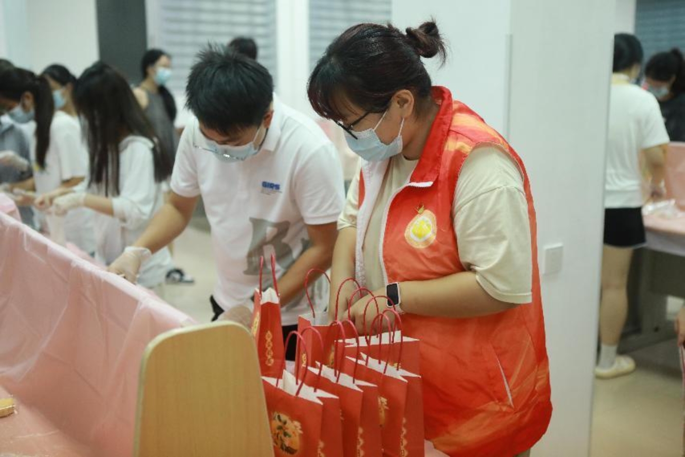 最后,学生宿舍自治管理委员会的工作人员还准备了精美的礼品袋,帮助同学们把一个个机灵的冰皮月饼包装好后,装入礼品袋,随后并将这一份份可爱的冰皮月饼和这一份份美好的回忆送到了同学们的手上。