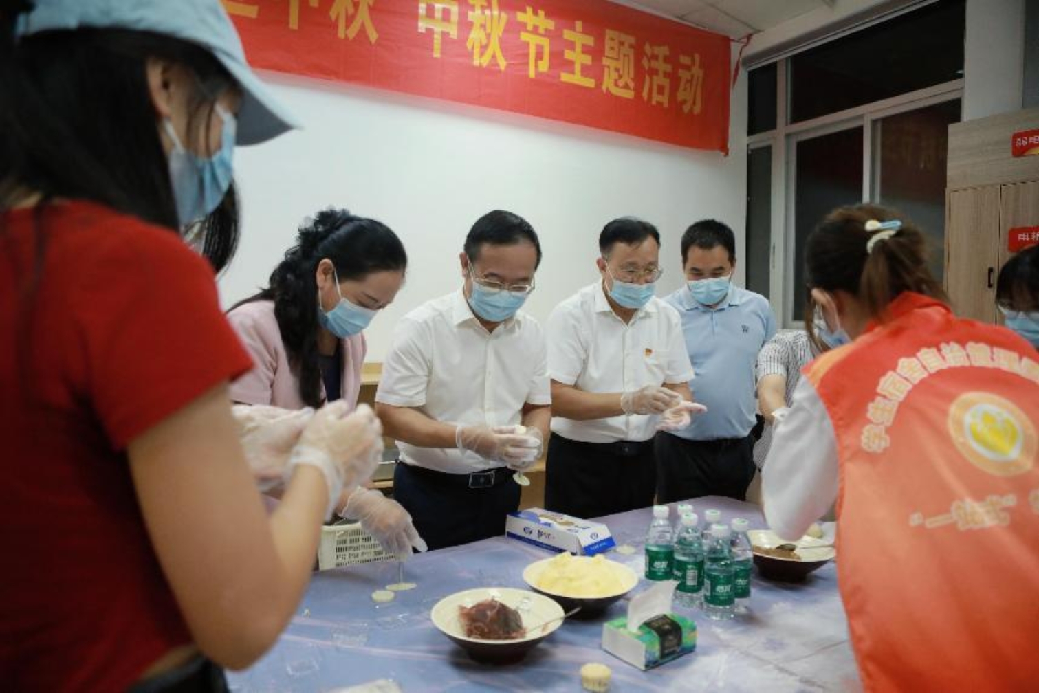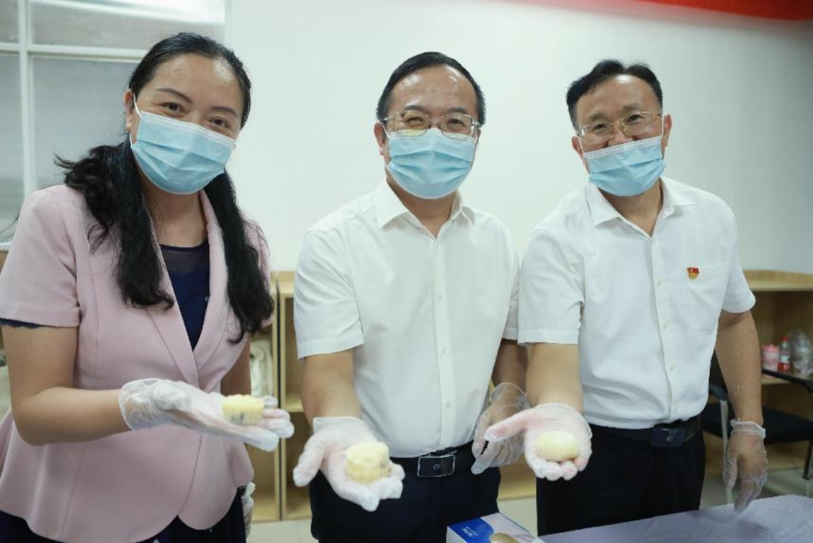 学校领导、老师们也热情洋溢地融入到冰皮月饼的制作中,他们面带微笑,亲切地与同学们交流着月冰皮月饼制作的技巧,和同学们一起认真完成揉冰皮、充馅料、压模具等操作。此刻,领导、老师与同学们共聚一堂,一同享受着制作冰皮月饼所带来的欢乐,共同感受着传统文化带来的魅力。