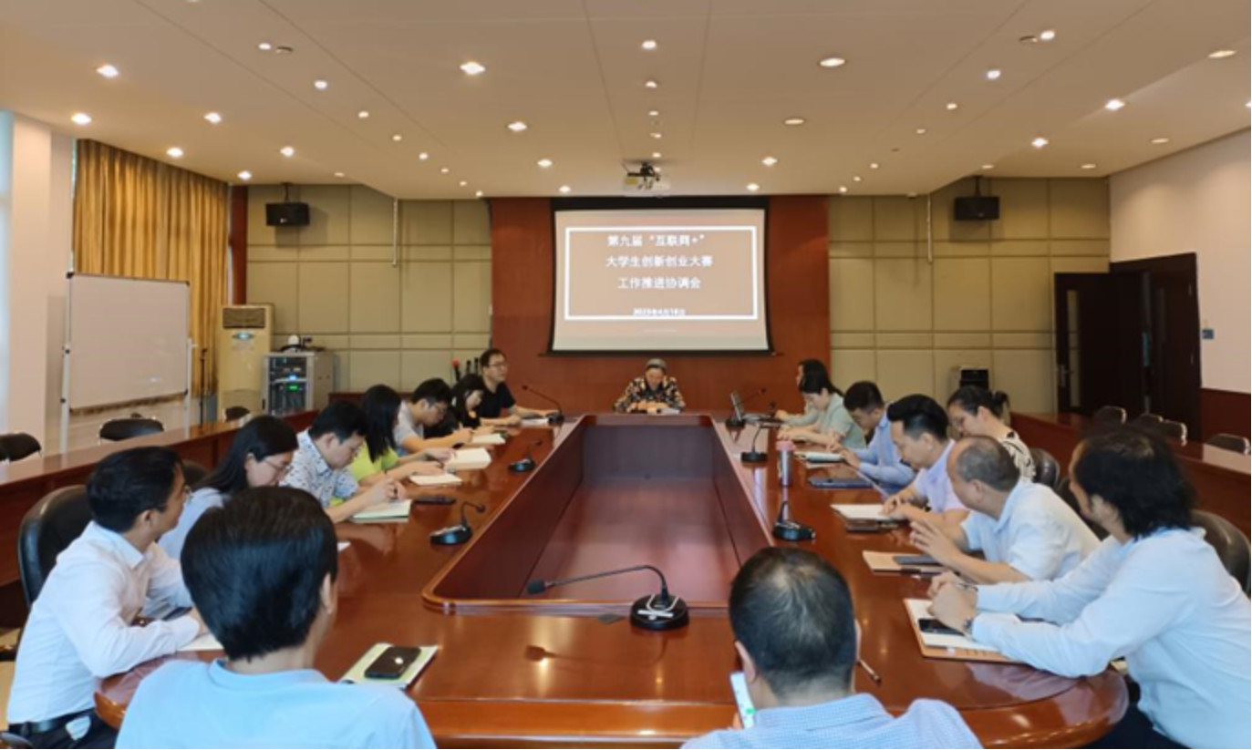 本网讯(创院 周蓁蓁)为进一步推进我校第九届中国国际“互联网+”大学生创新创业大赛(以下简称“互联网+”大赛)工作开展,4月18日上午,我校在行政楼326会议室召开“互联网+”大赛工作推进协调会。校长助理邓惠,创新创业教育学院院长吴晓义、副院长陈静,学生处黄海峰处长、校团委阮霖书记、黄都老师以及各二级学院行政副院长、团委书记等参加了本次会议。