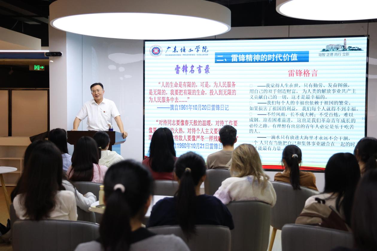 课程伊始,主讲人向在场学生提问有关雷锋的基础知识,学生纷纷举手作答。简短快乐的互动后,武电平书记指出,为了贯彻落实习近平总书记“把雷锋精神代代传承下去”的重要指示,今天以《弘扬雷锋精神 做新时代青年》为题作为“思政第一课”。他从国家发展与个人成长的角度,为学生深入解读雷锋精神的时代价值,引导学生树立正确的人生观和价值观,争做堪当民族复兴大任的时代新人。
