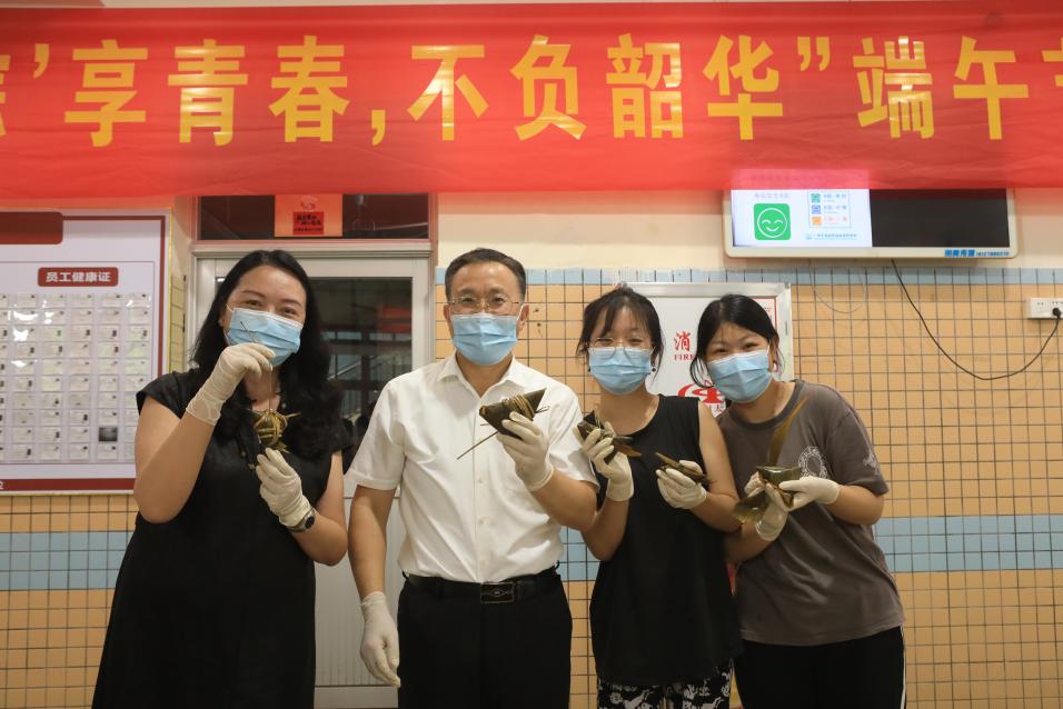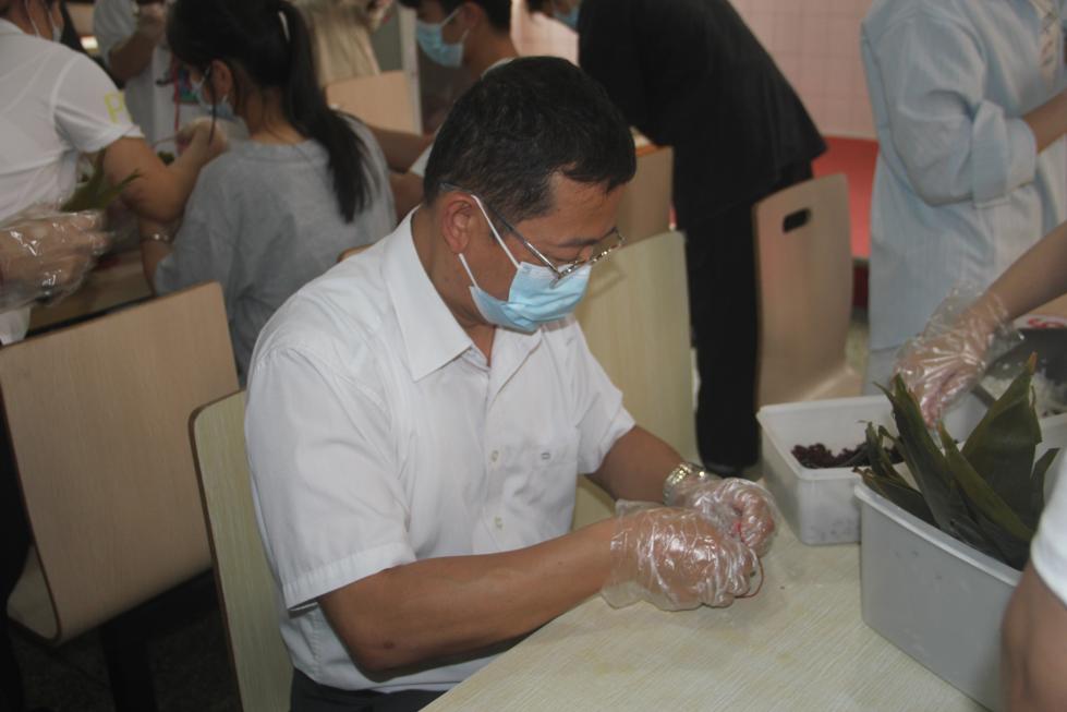 学校领导们也热情洋溢地融入到活动中,他们面带微笑,亲切地与同学们交流着包粽子的技巧,和同学们一起学习如何折叠粽叶、填充糯米、系粽绳等操作。在这个过程中,领导们与同学们肩并肩站在一起,共同感受着包粽子的独特魅力和乐趣。