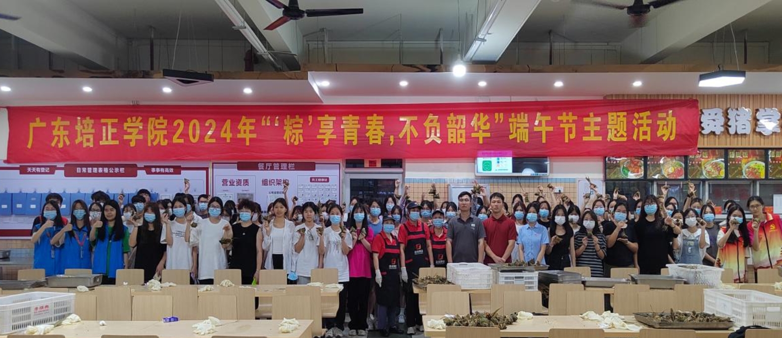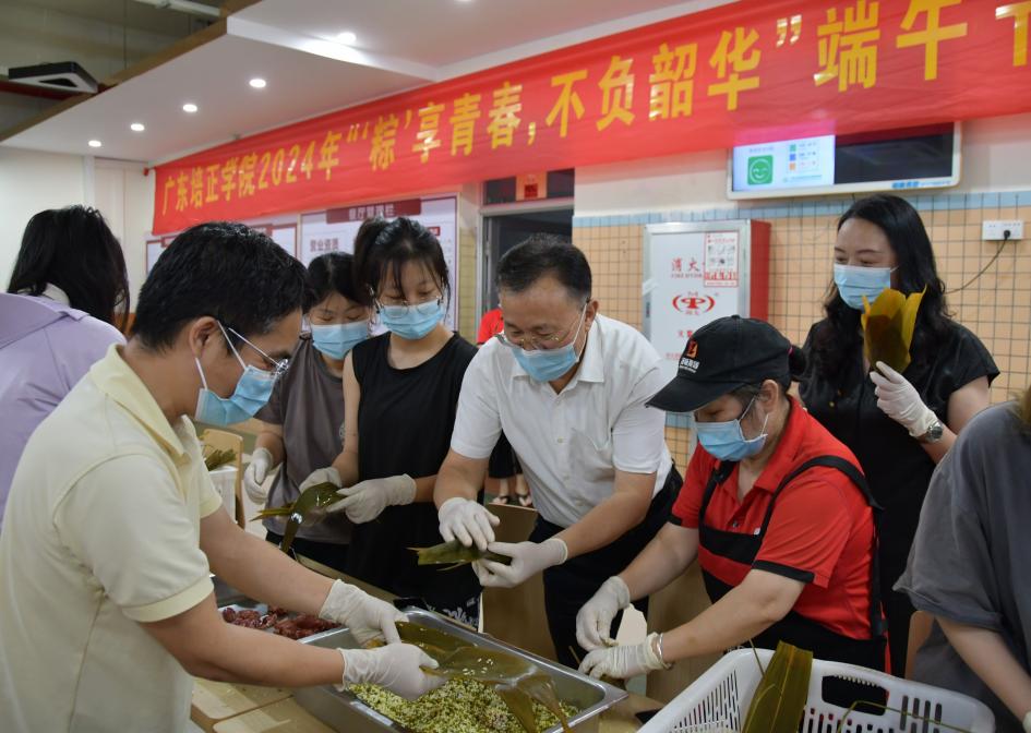 本网讯(学生工作部 陈松浩)2024年6月5日,广东培正学院在学校第一、二、三饭堂举办以“粽享青春,不负韶华”为主题的端午包粽子活动。学校党委书记武电平、副校长黄观德、校长助理宋宇翔、校长助理邓惠、学生工作部部长黄海峰、总务处处长兰大鹏等人员出席活动,与广大师生一同包粽子,共同感受传统节日的文化氛围。