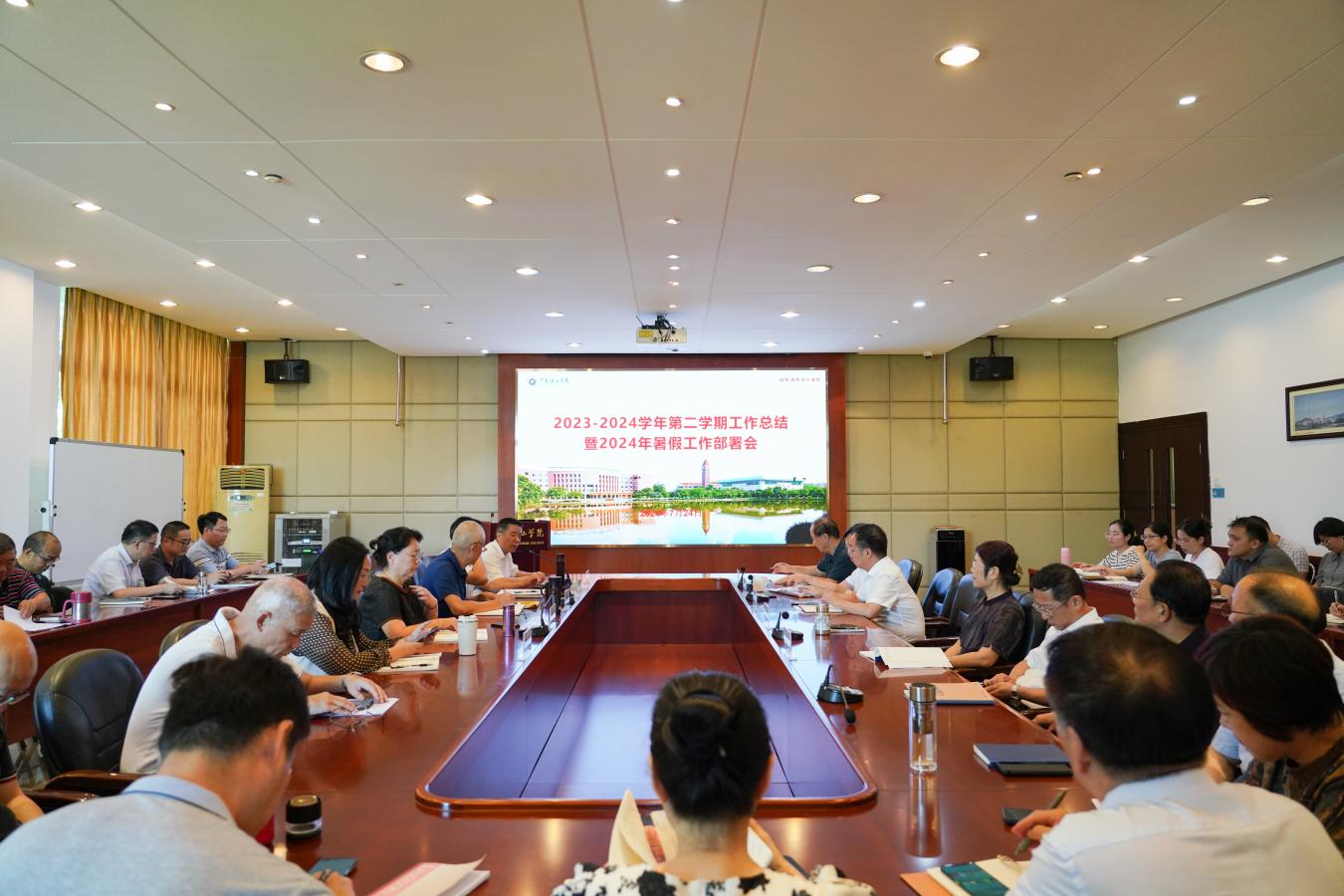 本网讯(校办 邬宝盈)为更好地提炼本学期工作成果,进一步安排好暑期和下一阶段重点工作,2024年7月24日下午,学校在行政楼会议厅召开2023-2024学年第二学期工作总结暨2024年暑假工作部署会。全体董事会领导、校领导和中层干部参加会议,会议由黄崴校长主持。