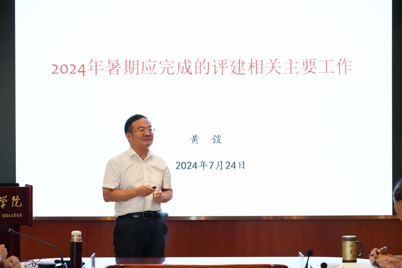 黄崴校长做总结讲话。他强调本学期的中心工作是持续加强审核评估建设,学校各部门全面对标教育教学审核评估指标体系,坚持目标导向和问题导向,全面总结和查漏补缺,切实做到补短板、强弱项、育特色、扬优势。一是加强党建引领,坚持办学方向。二是落实办学定位,依法依规办学。三是完善培养体系,落实OBE理念。四是以教师队伍为根本,加强教师队伍规模和结构建设。五是扎实推进招生就业工作,加强学生综合素质培养。六是推进学科建设和科研工作,促进学术文化发展。七是加大经费投入,改善办学条件。八是持续建设平安校园,守护师生健康安全。九是迎接审核评估的准备工作。