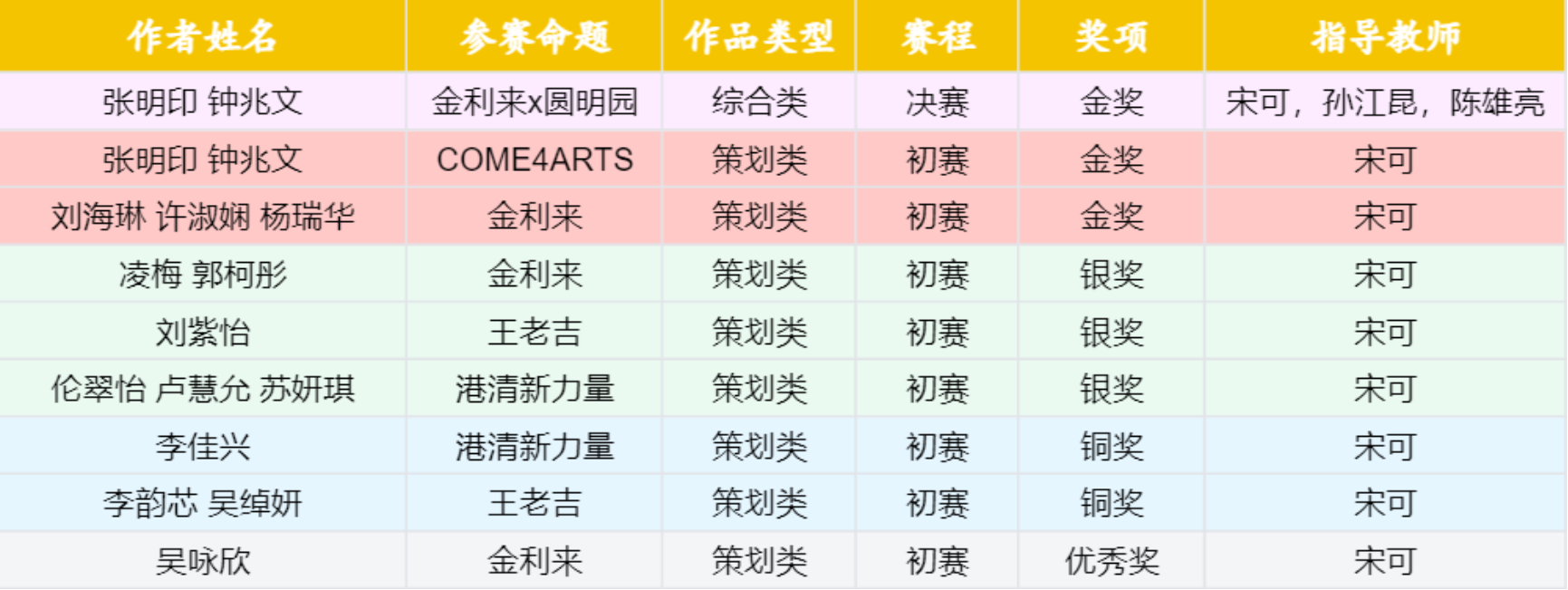 衷心祝贺获奖的各位同学!功夫不负有心人,得来不易的荣誉以及优秀的作品背后是师生共同付出和努力的结果。参赛的广告学学子们在粤港澳大湾区大学生创意节中的优异表现彰显了团队风采和专业水平,充分展示了人文学院广告学专业积极落实“以赛促教,以赛促学,以赛促改,课赛融合”的教学理念。专业教师全程参与竞赛组织和作品指导,不断提升学生的专业能力和综合素质,获得一项又一项荣誉,取得一个又一个里程碑式的突破。专业学科竞赛有助于学生们对理论知识的理解,强化其专业应用技能。同时,赛教融合的创新教学理念,也有助于培养我校高素质应用型创新人才,为学生就业奠定了扎实的基础。