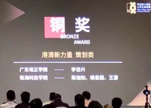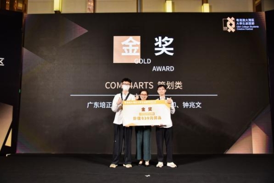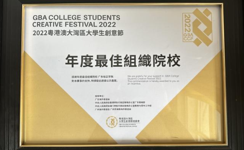 2023年5月13日,2022粤港澳大湾区大学生创意节决赛及颁奖典礼在广州隆重举行。本届粤港澳大湾区大学生创意节共近2000份作品参赛,来自逾130所学校的学子参与角逐,包含华南理工大学、暨南大学、北京电影学院、四川外国语大学、华南农业大学、深圳大学、广州大学、汕头大学、广东财经大学等高校,最终由学界、业界、品牌三方组成的评审团进行初审及终审两轮评选,决出各命题等级奖及优秀奖。广东培正学院人文学院广告学学子在本次创意节中斩获佳绩,收获颇丰。初赛获得金奖2项、银奖3项、铜奖2项,优秀奖1项。决赛中,我校学子突出重围,与暨南大学学子一道斩获全场金奖。我校成为全场唯一荣获“年度最佳组织院校”荣誉和牌匾的院校,宋可老师荣获“年度最佳指导老师”称号。