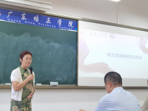紧接着,由王丽英副校长致辞。她表示,万世明院长有着丰富的经历,是典型的双师型教授加正高级工程师职称,在产教融合方面有很好的实践经历和成果,他的加入,相信对数科院是有很好的支持和帮助。接着,她就学校近来的发展情况和发展目标作进一步的说明介绍,同时对数科院提出了三点希望。一是认真思考如何做强广东培正学院的新工科,落到实处;二是做好师资队伍建设,特别是对年轻教师的培养、关注和帮助;三是希望在领导班子的带领下,数科院全体教职工同心协力,互相补台,发现谁有问题谁有困难,及时提醒,互帮互助,团结一心把数科院办得越来越好。