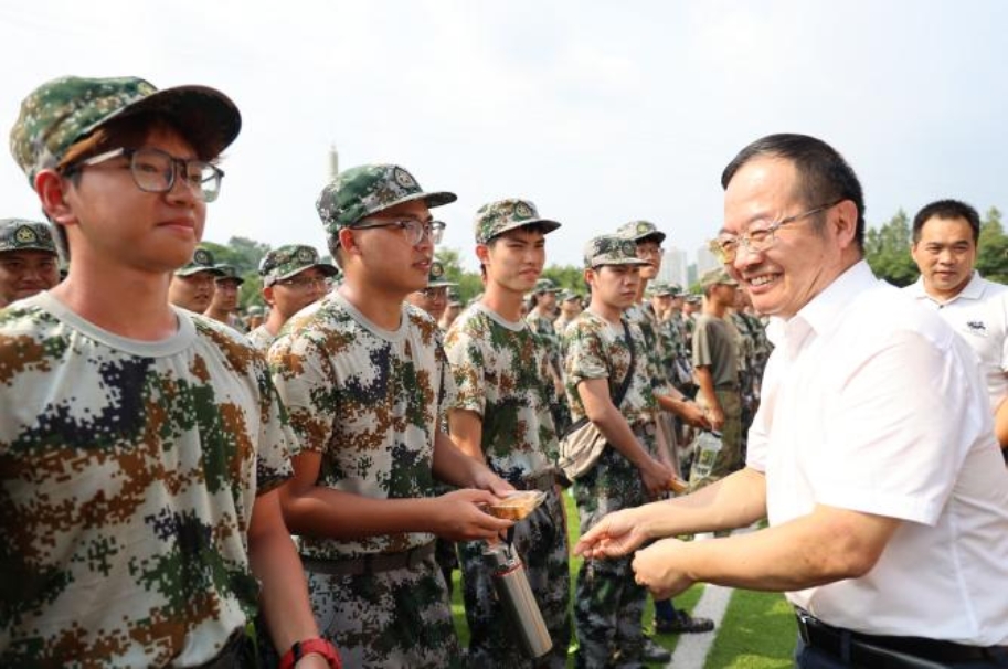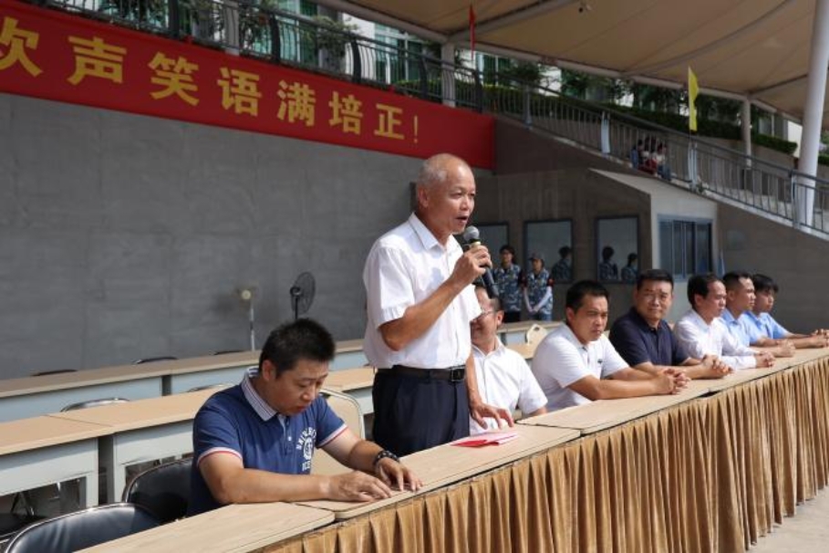 黄弢校长在活动上致辞。他首先向全校师生传达了节日的祝福;他指出军训不仅是体能的锻炼,更是意志的磨砺和精神的洗礼;他鼓励同学们把军训中学到的纪律性、团队精神等优秀品质融入到今后的学习生活中,为祖国的发展贡献青春力量。同时,他强调传承与弘扬中华优秀传统文化的重要性,希望同学们能够成为中华文化的忠实继承者和积极传播者。