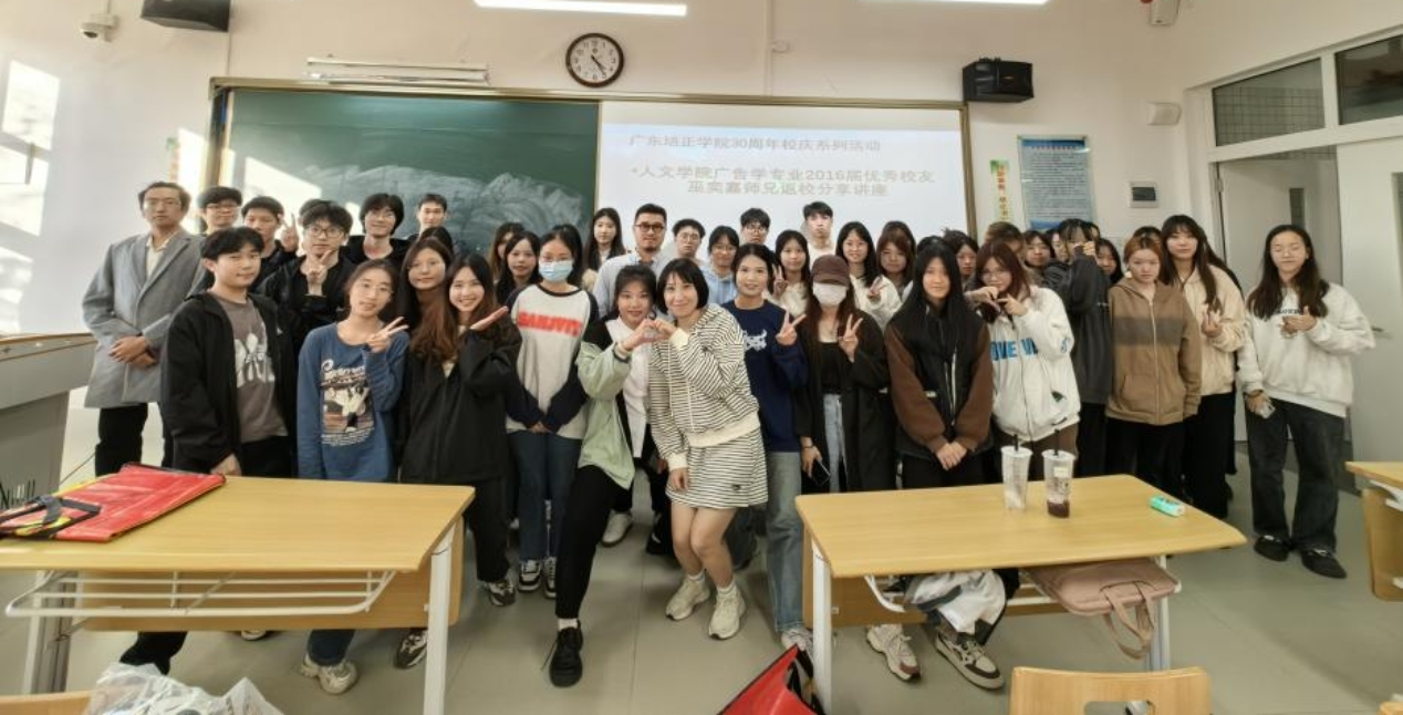 (人文学院 李婕颖)2023年11月17日,我校2016届广告学优秀校友巫奕嘉师兄返校进行分享会。此次分享会的主要目的是让师弟师妹们在大学中以及未来的工作和生活中不失热爱、坚定向前,不让热爱冷却,永远保持一颗向上的心,成为自己心目中的自己。