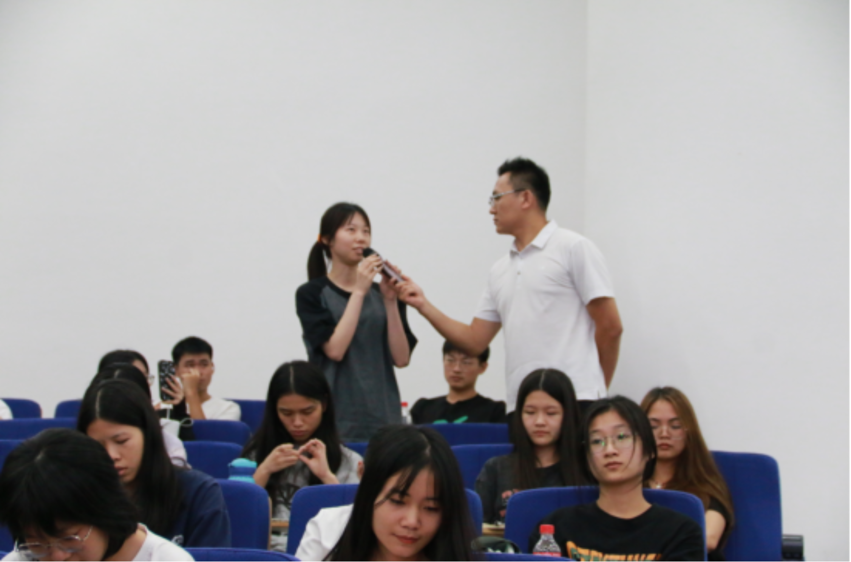 交流环节中,现场的同学们与夏天老师积极互动交流,同学们就职业的适配性、创业内容的选择、创业的注意事项等问题进行提问,夏天老师逐一耐心解答并结合丰富的经历给出了建设性意见。