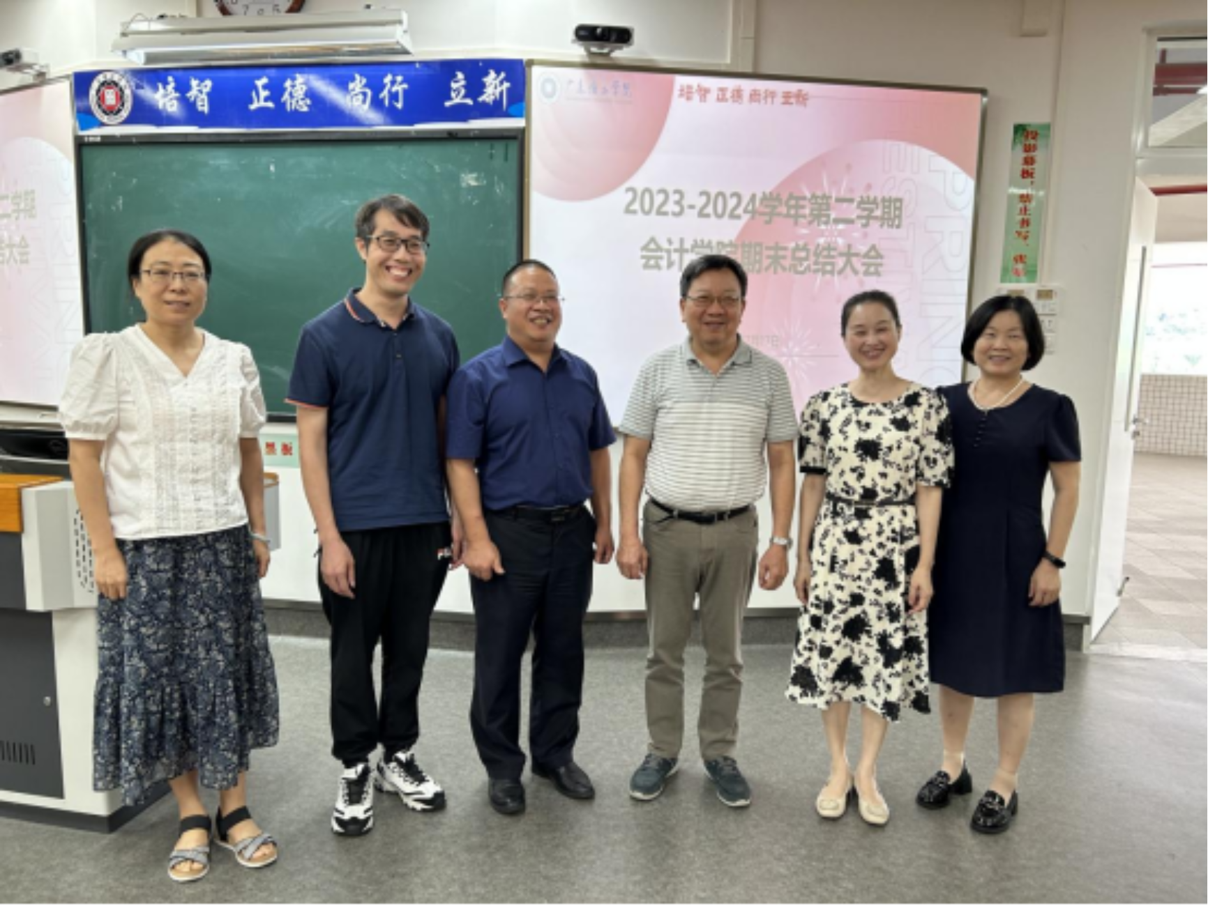 本网讯(会计学院 叶思华)2024年7月17日上午,会计学院在5教408召开2023-2024学年第二学期学期工作总结大会。学校常务董事长梁普建、会计学院院长刘晓瑜、学院党委书记陈双红、教学副院长谭洪益以及学院全体教职工参加此次大会。会议由学院党委书记陈双红主持。