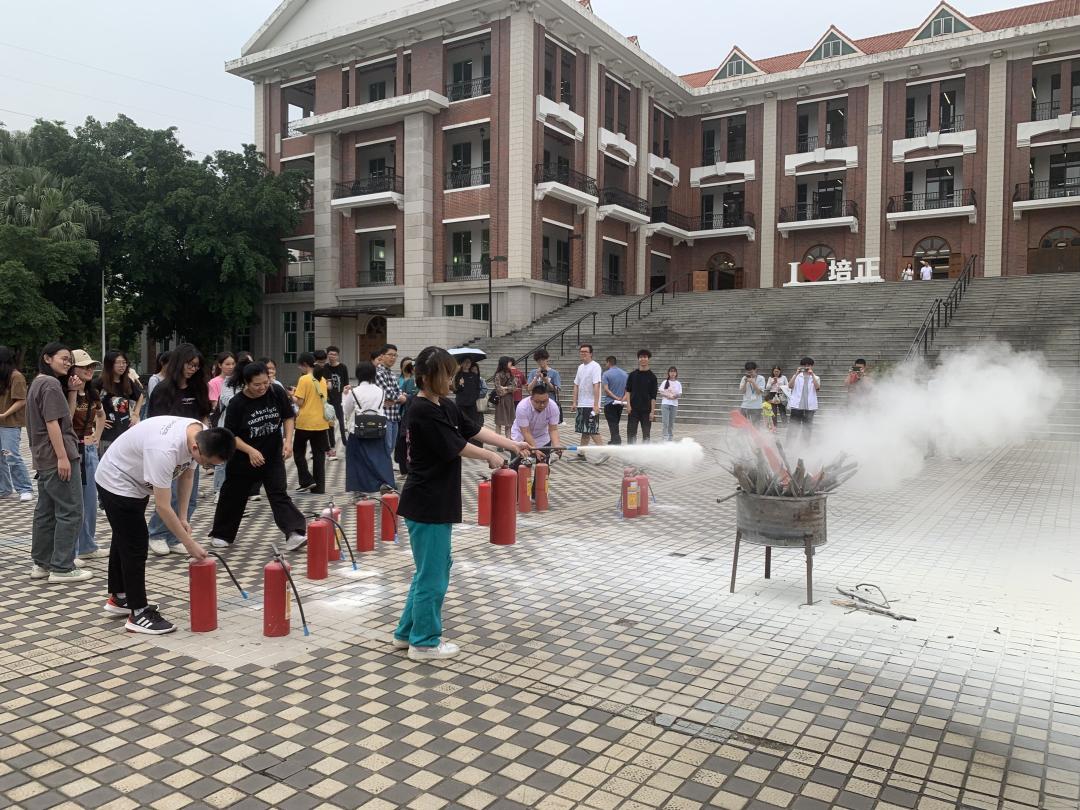 最后,学校保卫处和姚站长带领全体工作人员在图书馆前的子栋广场进行手提式干粉灭火器实操演练。姚站长先讲授如何检查灭火器的有效期和压力表,接着演示正确使用手提式干粉灭火器的方法。随后,参加培训的全体工作人员动手操作了手提式干粉灭火器灭火,确保人人都会使用灭火器,达到培训效果。
