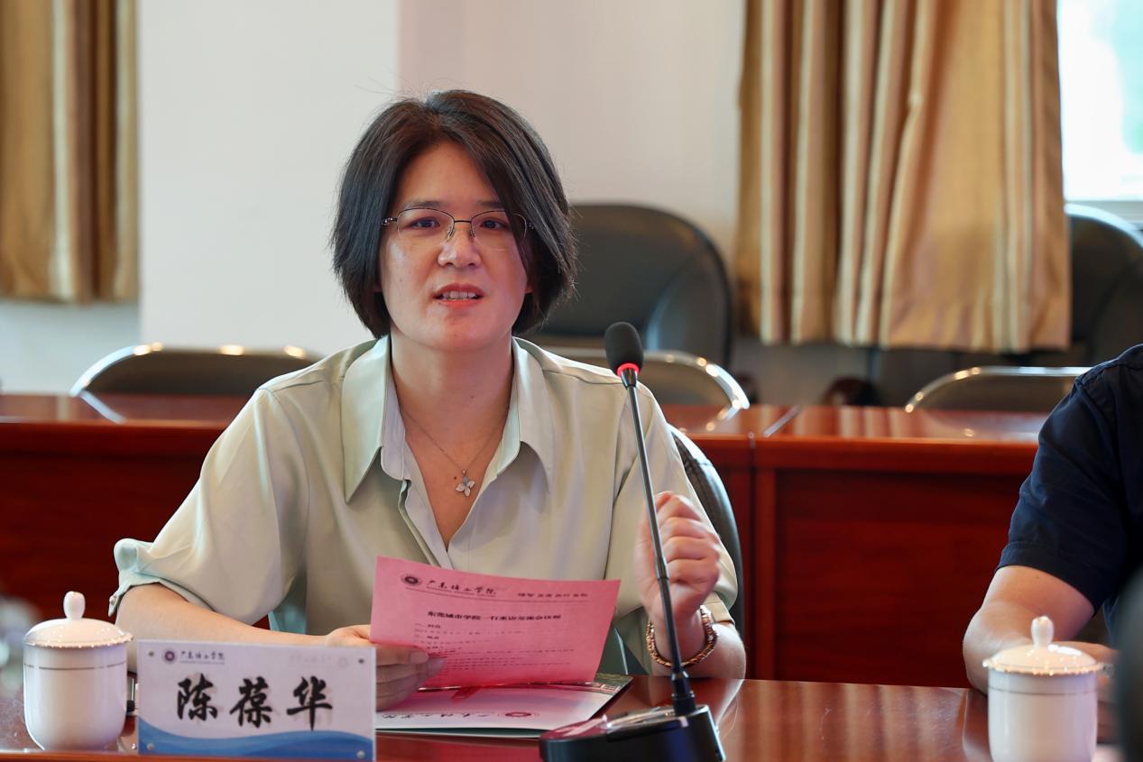 陈葆华副校长介绍了东莞城市学院的基本情况,她对我校在人才培养、产教融合工作等方面取得的亮眼成绩表示赞赏,表明此次来校调研旨在学习学校现代产业学院方面的经验做法。