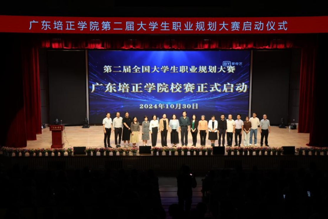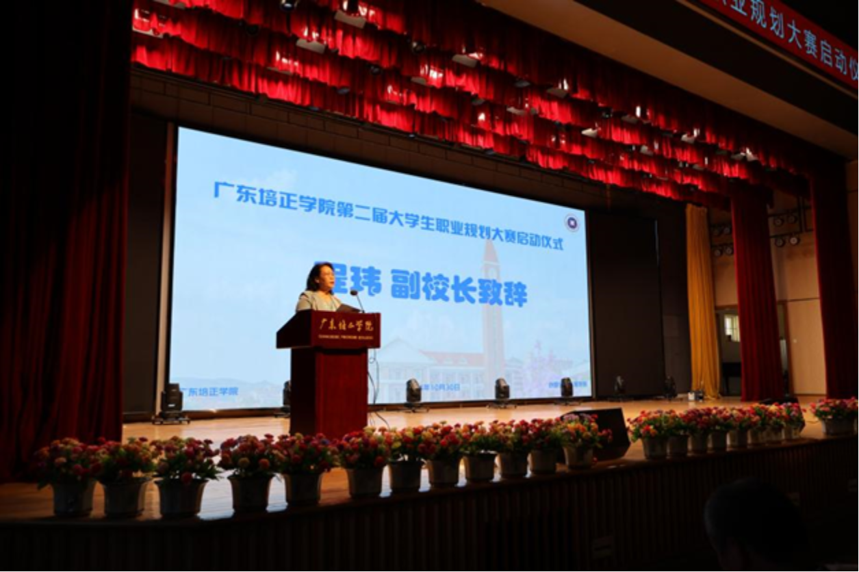 在热烈的氛围中,各二级学院领导上台共同按下启动按钮,预示着广东培正学院第二届大学生职业规划大赛校赛正式启动。