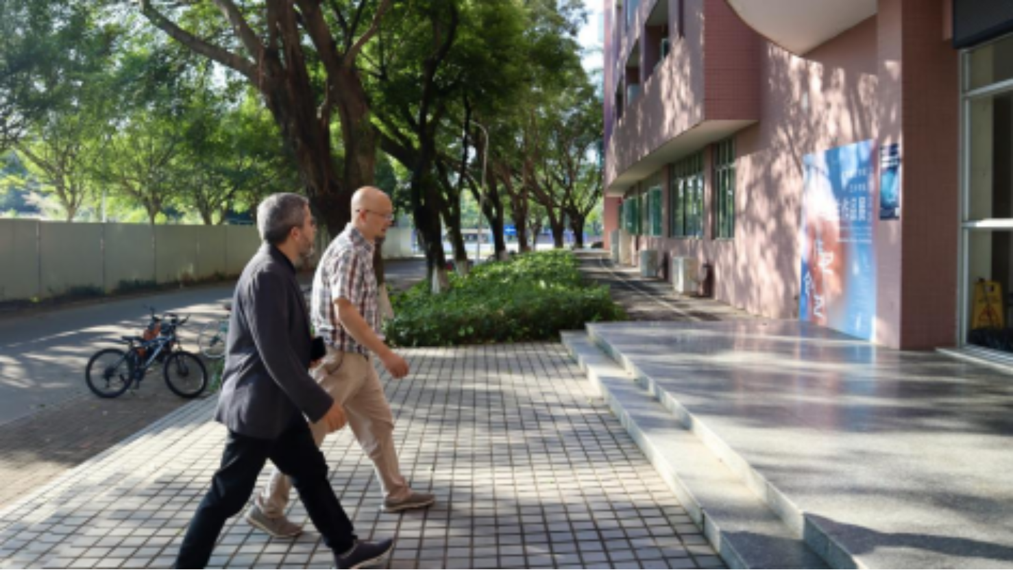 会后,刘飞院长陪同Carlos Sena Caires院长一行到图书馆展览场地、广东漆艺传承基地进行参观,并就漆艺传承基地相关情况进行了深入交流。Carlos Sena Caires院长一行表示对我校的校园氛围、办学成果印象深刻,称赞我校学生的作品富有创造力,巧妙地把当代艺术和传统工艺完美结合。