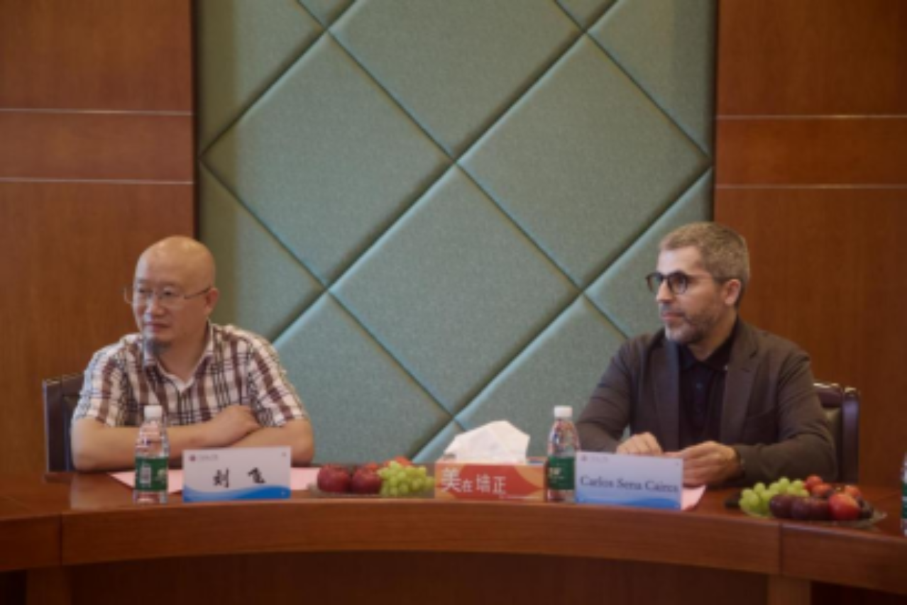 首先,双方于我校行政楼进行了会议座谈。我校港澳台事务办公室主任李秀臣作为该次会议主持,对Carlos Sena Caires一行的到来表示热烈欢迎。艺术学院院长刘飞就艺术学院的学科特色、人才培育、发展规划等进行了简单介绍。他表示,广东培正学院艺术学院一直致力于将中华优秀传统文化融入到教育教学中,推动中华优秀传统文化——广东漆艺的传承与普及,培育高素质的广东漆艺人才,同时凸显艺术学院“商为底色,漆为特色”的特点。随后,Carlos Sena Caires院长介绍了澳门圣若瑟大学艺术及人文学院的简况,并对即将举办的澳门圣若瑟大学-广东培正学院师生作品交流展表示高度重视。同时,他表示希望两校能够通过此次交流进一步深化了解,共谋发展。