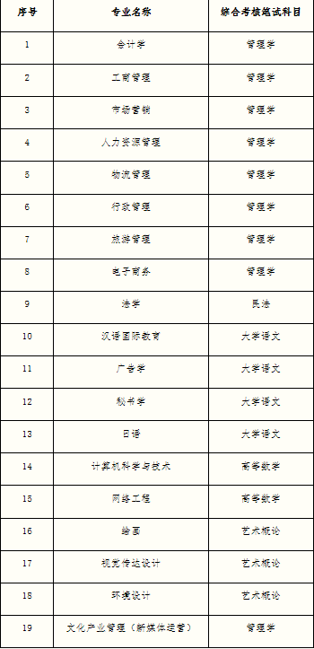 (5)各招生专业综合考核笔试科目